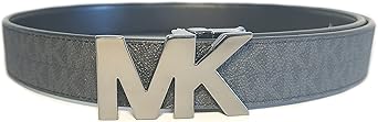 Michael Kors Mens Gunmetal MK Logo Belt Reversible Black/Black (32)