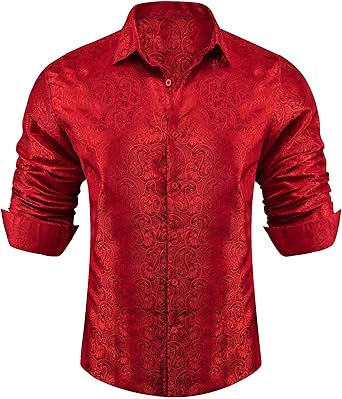 Mens Silk Dress Shirt Paisley Floral Jacquard Long Sleeve Button Down Shirts Regular Fit for Business Party