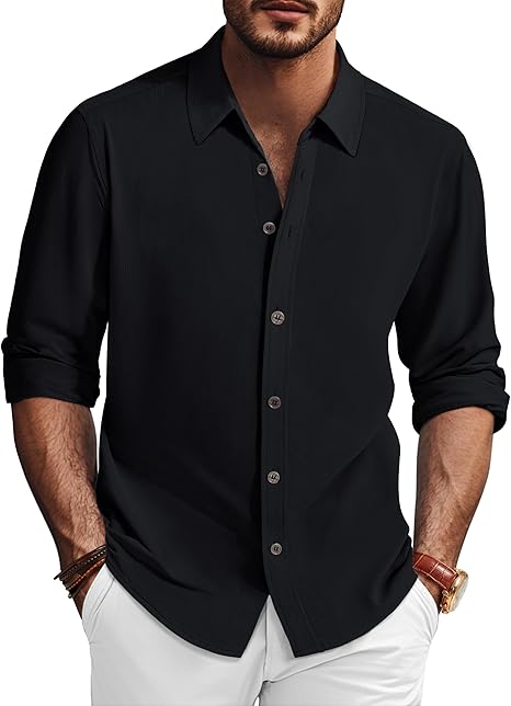 PJ PAUL JONES Mens Stretch Wrinkle Free Dress Shirts Long Sleeve Button Down Shirt Slim Fit Formal Shirts