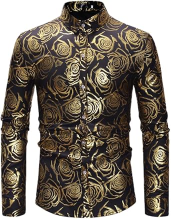 Shirts for Men Black Rose Bronzing Long Sleeve Dress Shirt Wedding Groomsmen Party Men Soft Easycare Formal Top