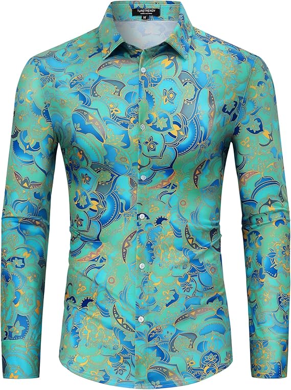 TURETRENDY Men's Paisley Floral Dress Shirt Long Sleeve Slim Fit Button Down Shirts for Prom Wedding Party