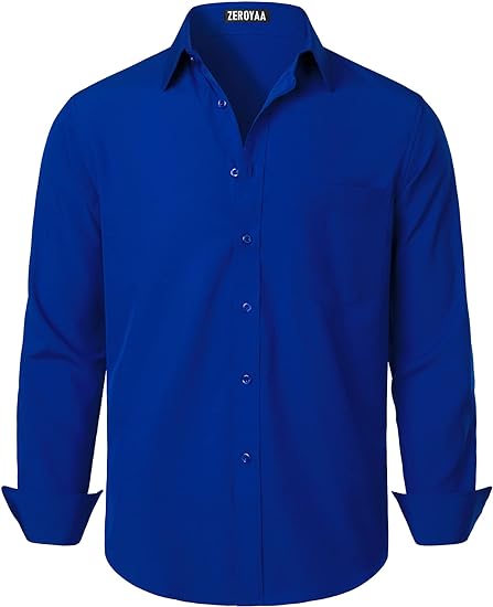ZEROYAA Men's Regular Fit Dress Shirt Solid Wrinkle-Free Long Sleeve Casual Business Button Up Shirts with Pocket