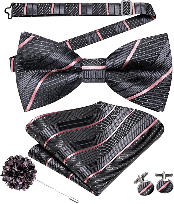 Hi-Tie Pretied Bow Ties for Men Wedding Formal Bow Tie Handkerchief Cufflinks Lapel Pin Set Party Formal Mens Bowtie Set