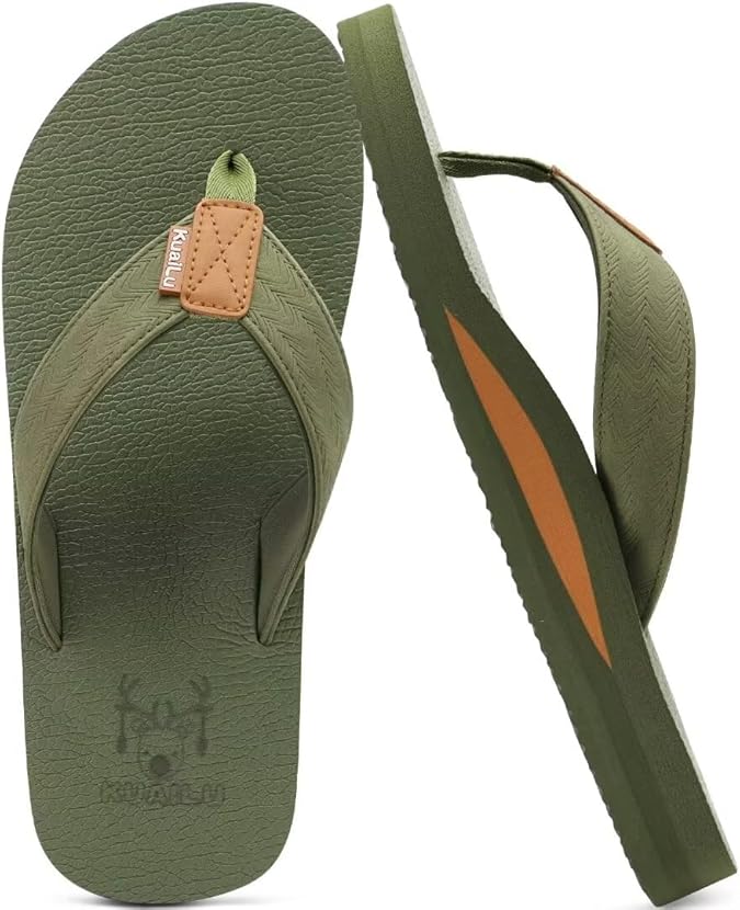 KuaiLu Men's Yoga Mat Leather Flip Flops with Arch Support Comfortable Cushion Walking Thong Sandals Slip On Indoor Outdoor