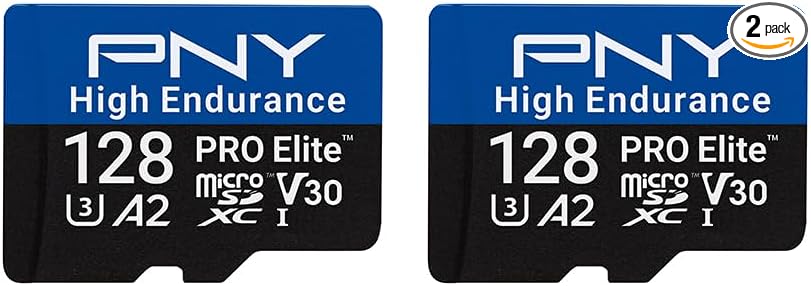 PNY 128GB PRO Elite‰ã¢ High Endurance C10 U3 V30 A2 microSDXC ‰ÛÒ Up to 34.4K Continuous Recording Hours, Up to 100/90MB/s Read/Write, 4K UHD, Full HD, UHS-I, Surveillance, Home Security, Dash Cam, 2-Pack