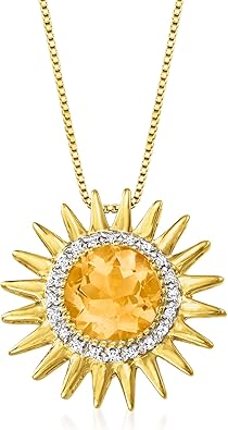 Ross-Simons 2.00 Carat Citrine and .10 ct. t.w. Diamond Sun Pendant Necklace in 18kt Gold Over Sterling. 18 inches