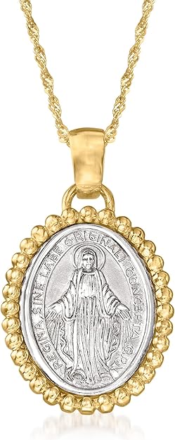 Ross-Simons Italian 14kt 2-Tone Gold Miraculous Medal Adjustable Pendant Necklace