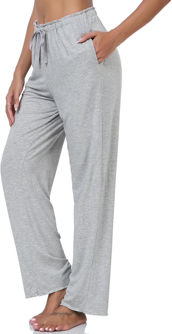 COLORFULLEAF Women's Bamboo Rayon Pajamas Pants Wide Leg Pants Lounge & Sleep Bottoms with Pockets