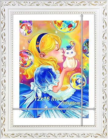 Betionol Diamond Painting Frames, Classic White Nature Solid Wood Frame Covered Plaster Fit For 12x16 inch/30x40cm Photos or Prints, Including Plexiglass and Back Mat and Hanging Kits