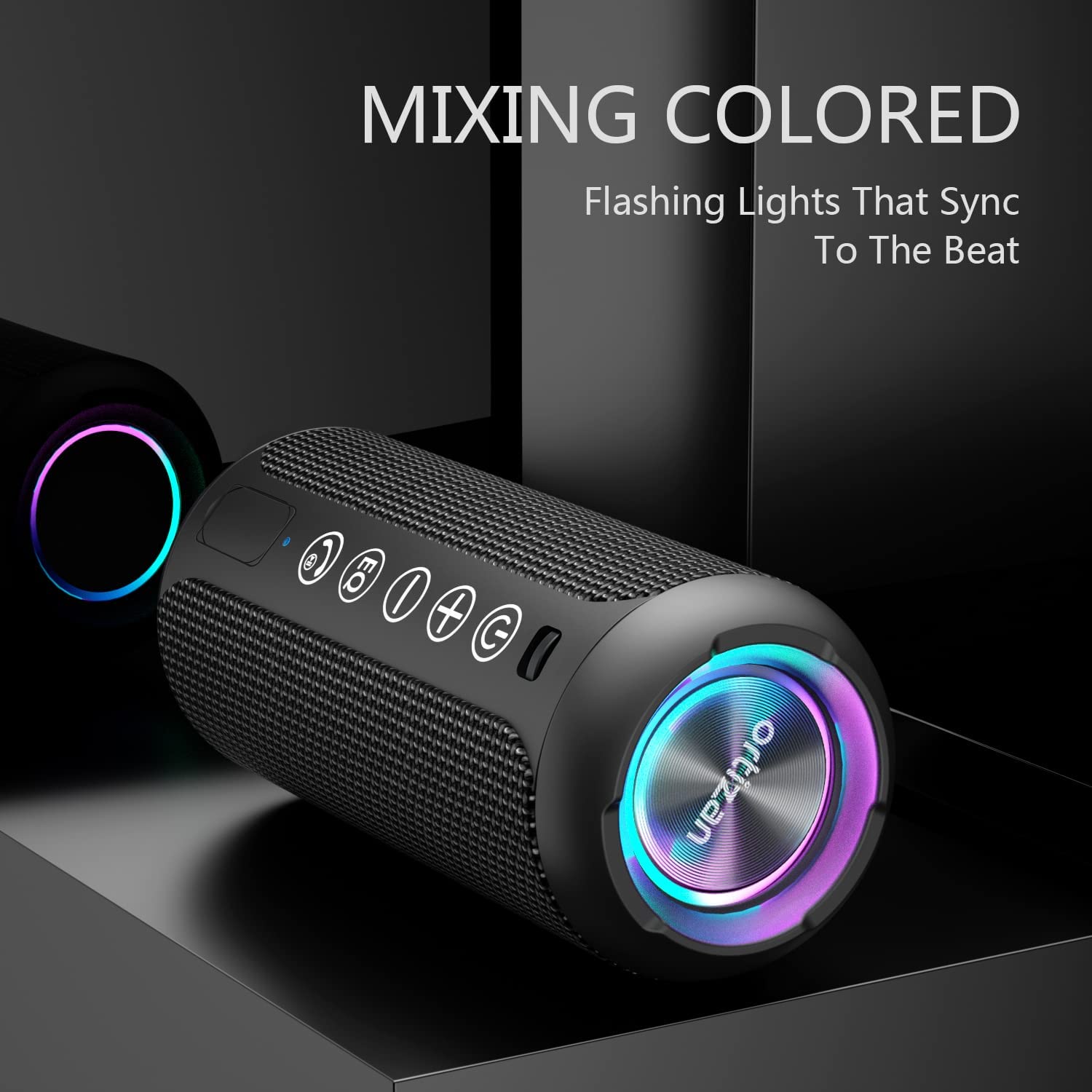 Ortizan Portable Bluetooth Speakers, IPX7 Waterproof Wireless Speaker with 24W Loud Stereo Sound, Outdoor Speaker with Bluetooth 5.0, Deep Bass, RGB Lights, Dual Pairing, 30H Playtime for Home, Party