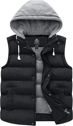 wantdo Women's Plus Size Windproof Puffer Vest Quilted Winter Vest Thicken Jacket with Detachable Hood