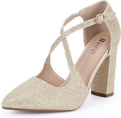 IDIFU Women's IN4 Chunky High Heels Pumps Closed Toe Block Strappy Heels Pointed Toe Dress Shoes for Women Prom Wedding Party Office Work Formal