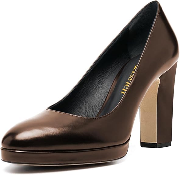 Women Platform Closed Almond Toe Pumps Classic Slip On Block Chunky High Heels Versatile Formal Business Party Shoes Size 4-16 US