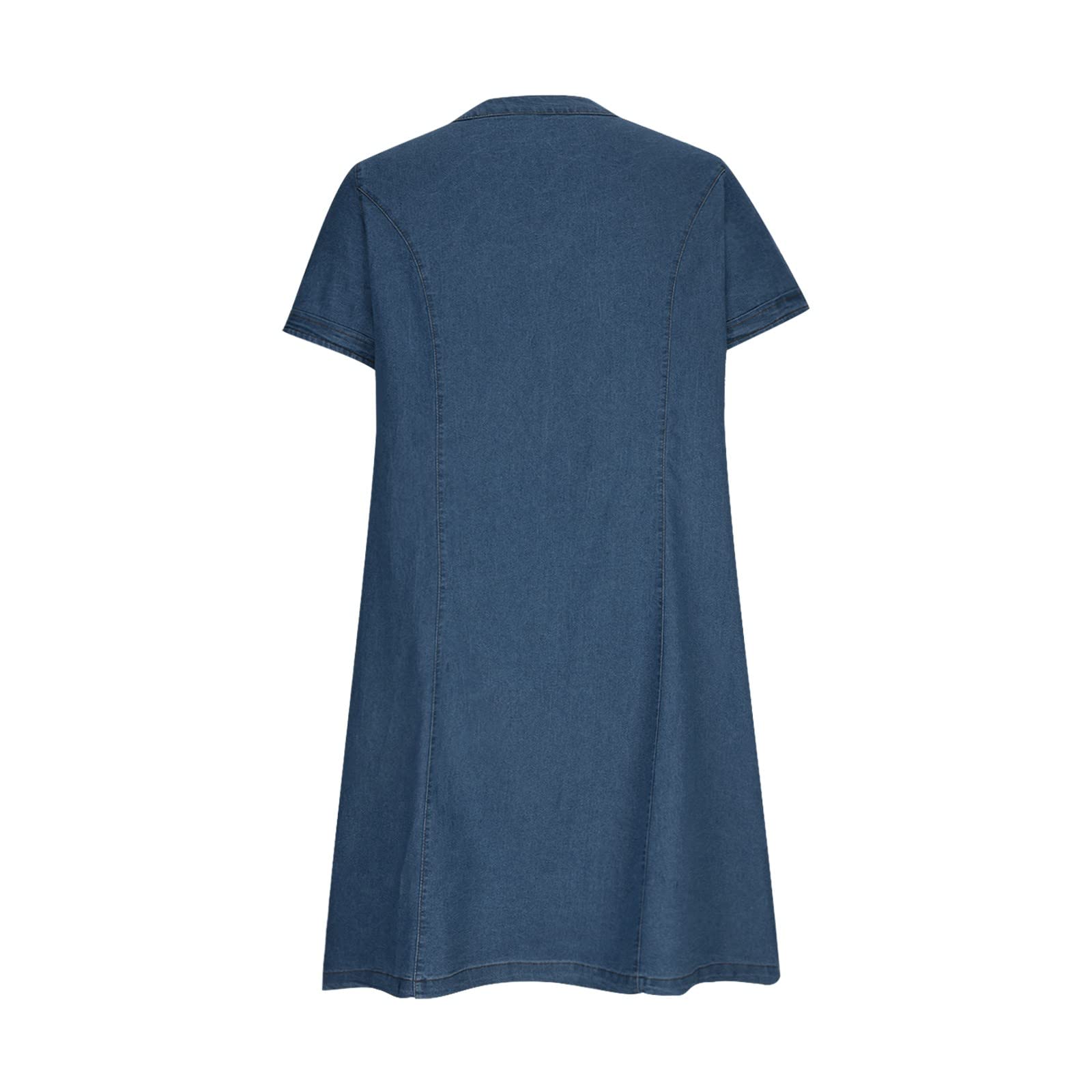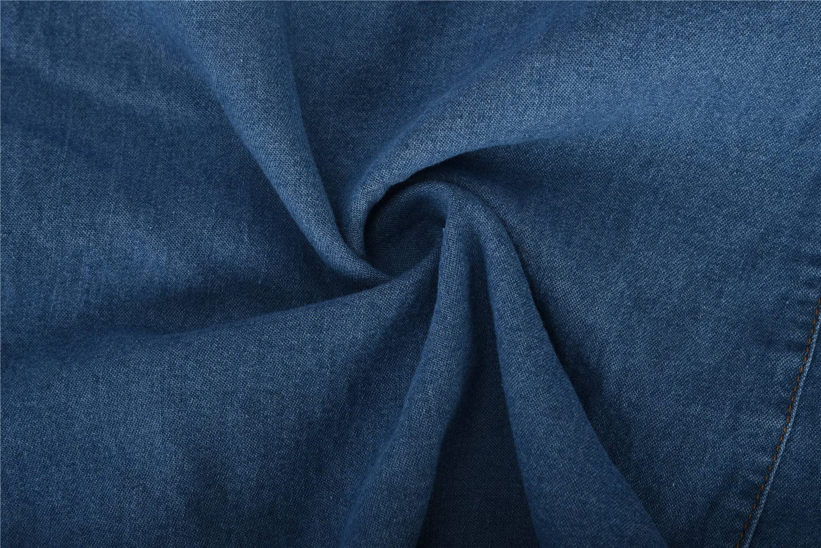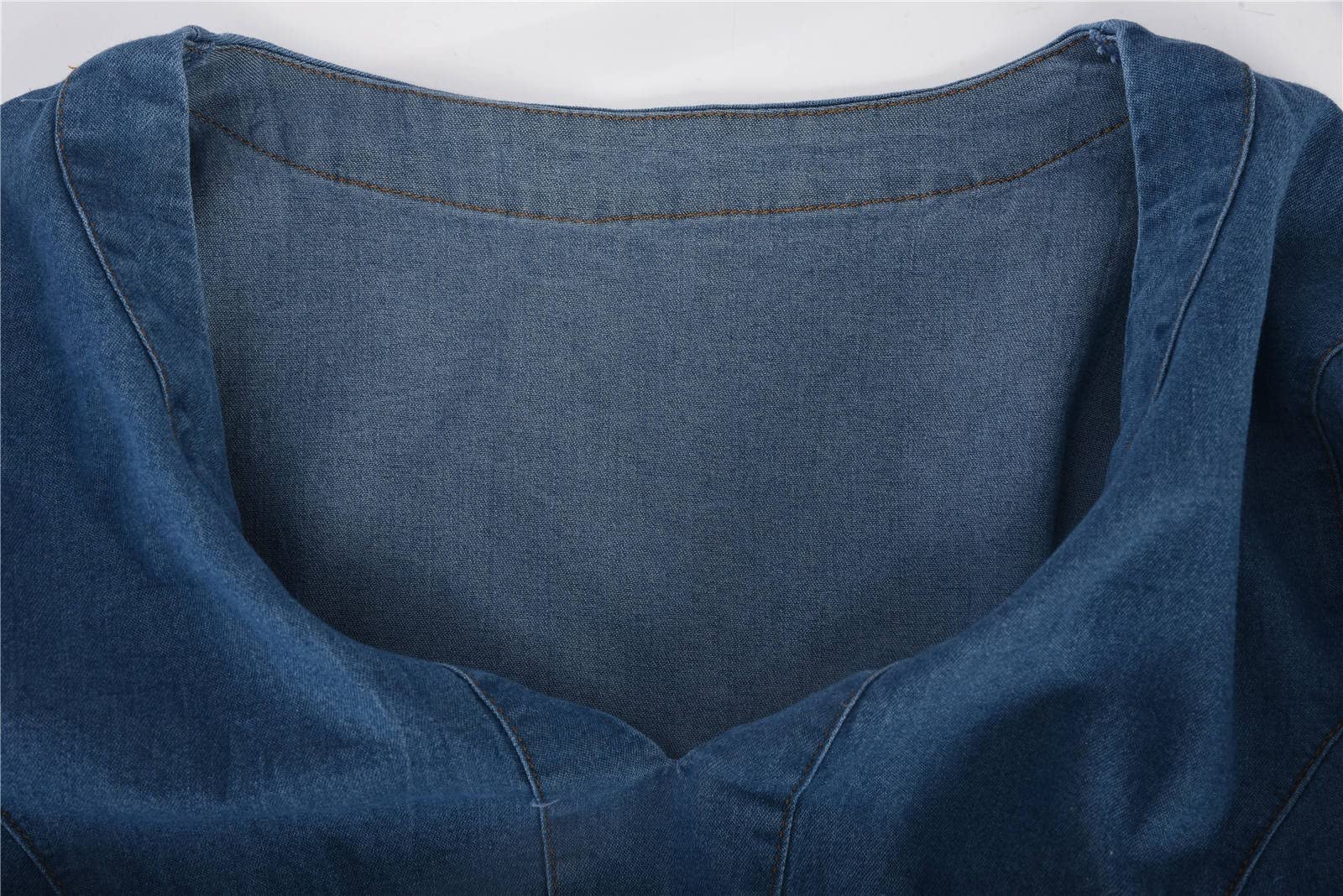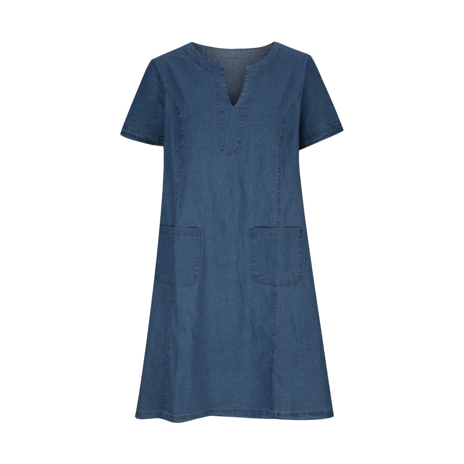 2023 Loose Denim Dress Women Summer Short Sleeve V-Neck Relaxed Fit Denim Dress Stylish Distressed Knee-Length Wrap Dress Blue