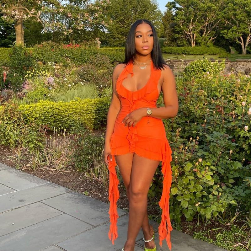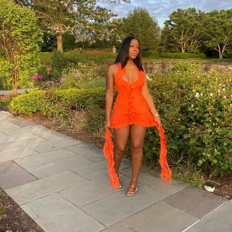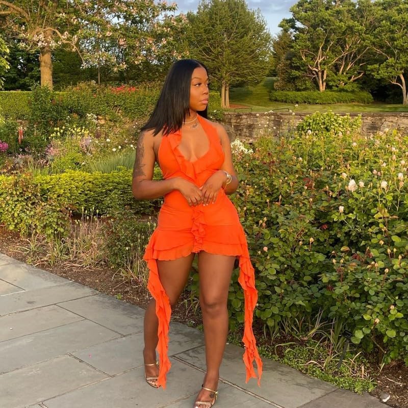 Adogirl Sexy Ruffle Y2K Mini Dress for Women Halter Neck Backless Bodycon Fringed Ruched Cocktail Summer Party Club Tassels Short Dresses Orange L