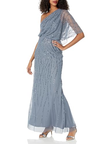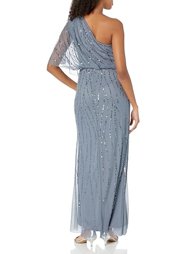 Adrianna Papell Women's Long Beaded Dress, Dusty Blue, 12