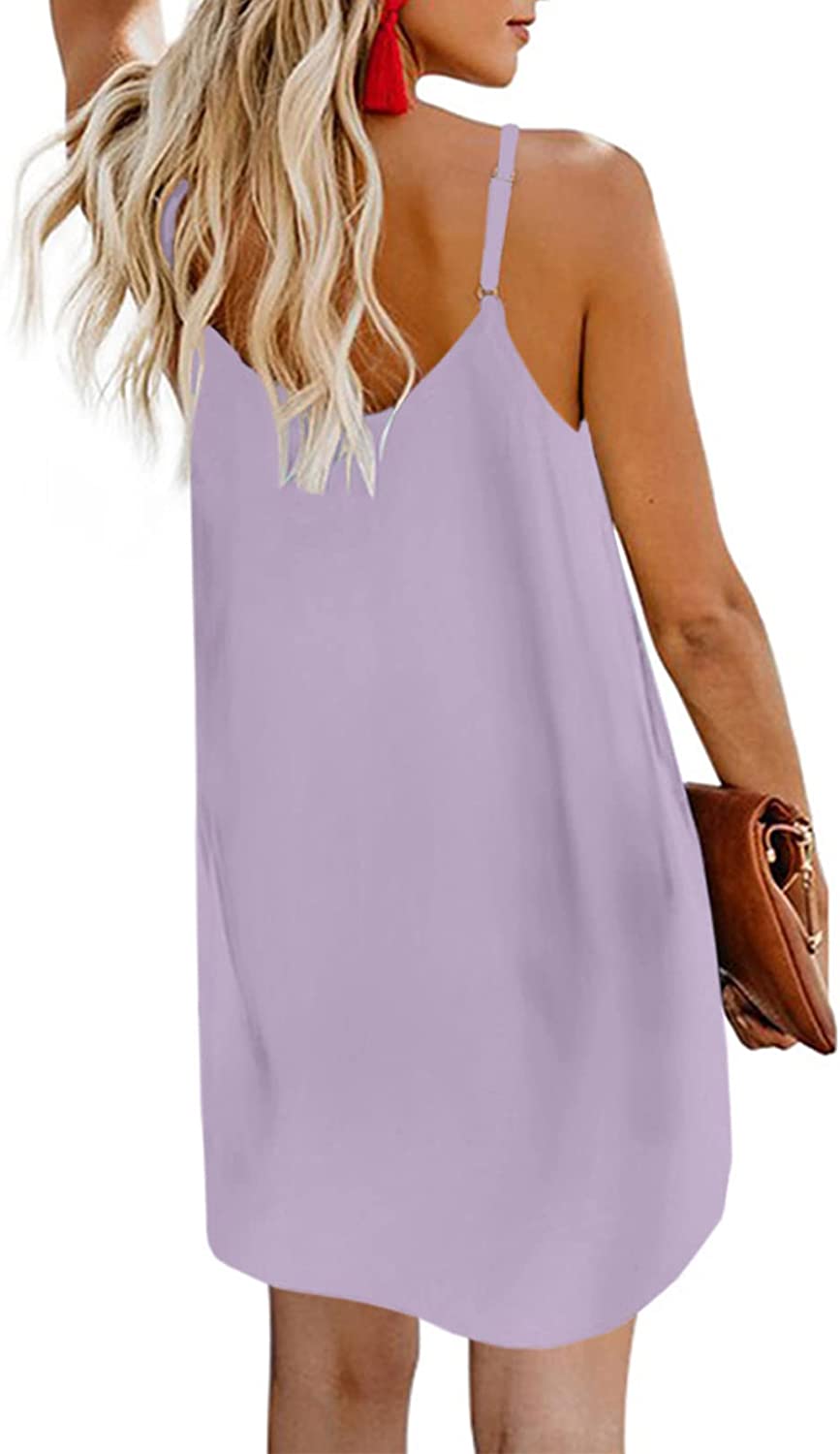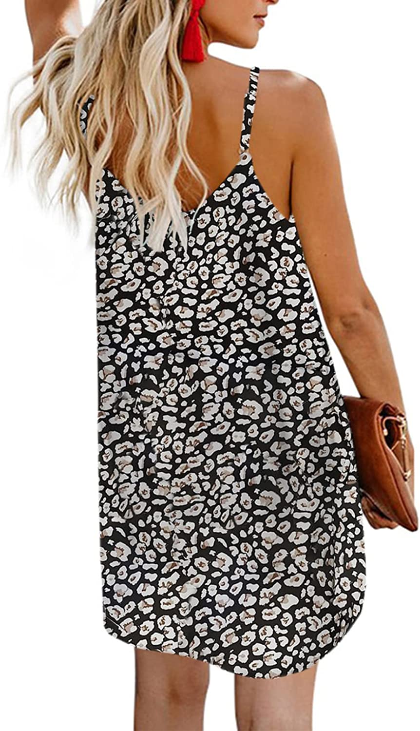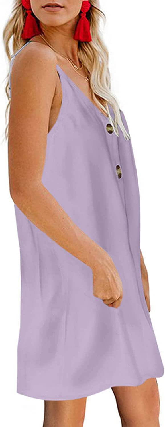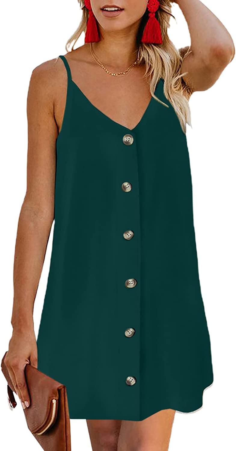AlvaQ Women Summer Spaghetti Strap Button Down V Neck Sleeveless Casual Mini Dress