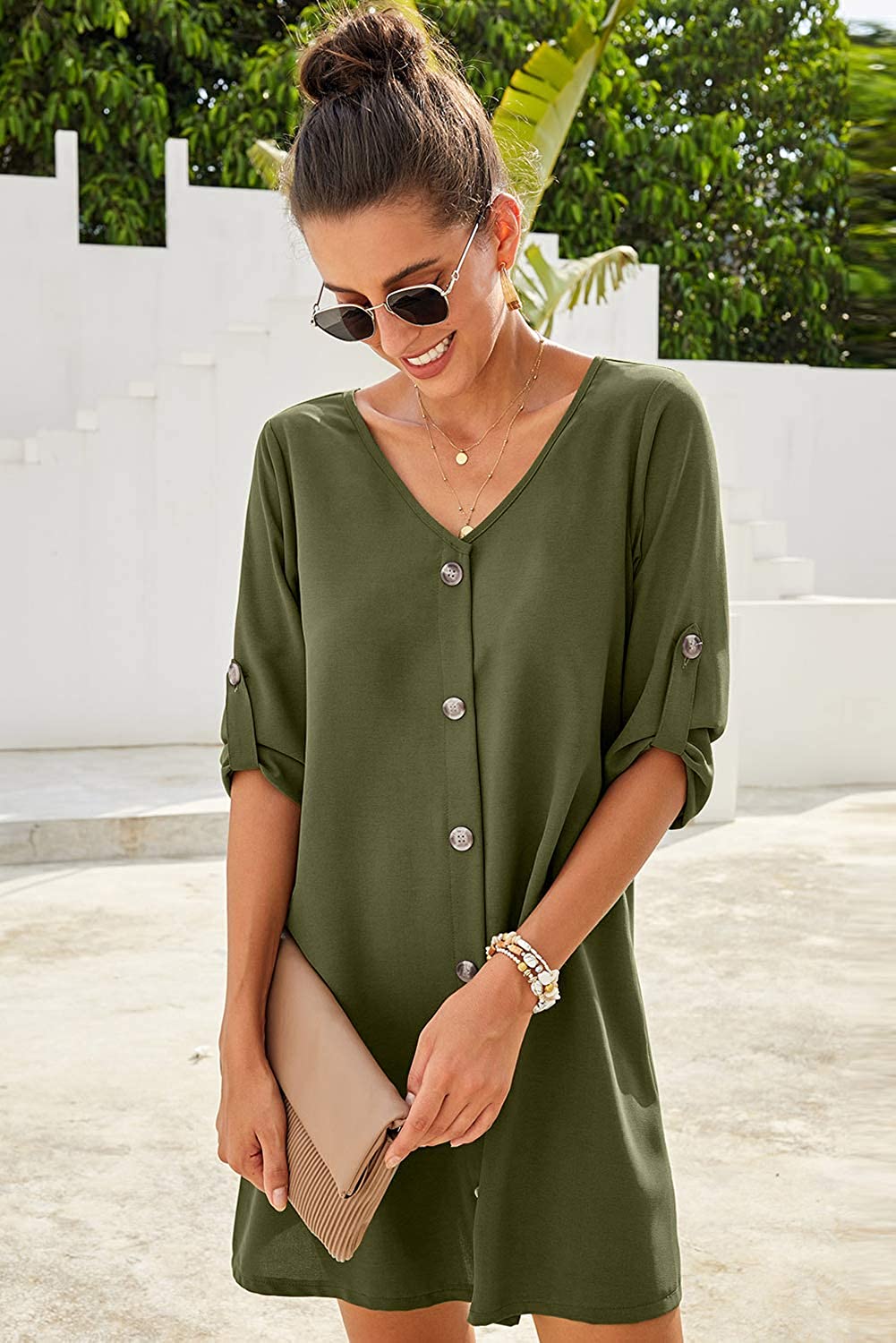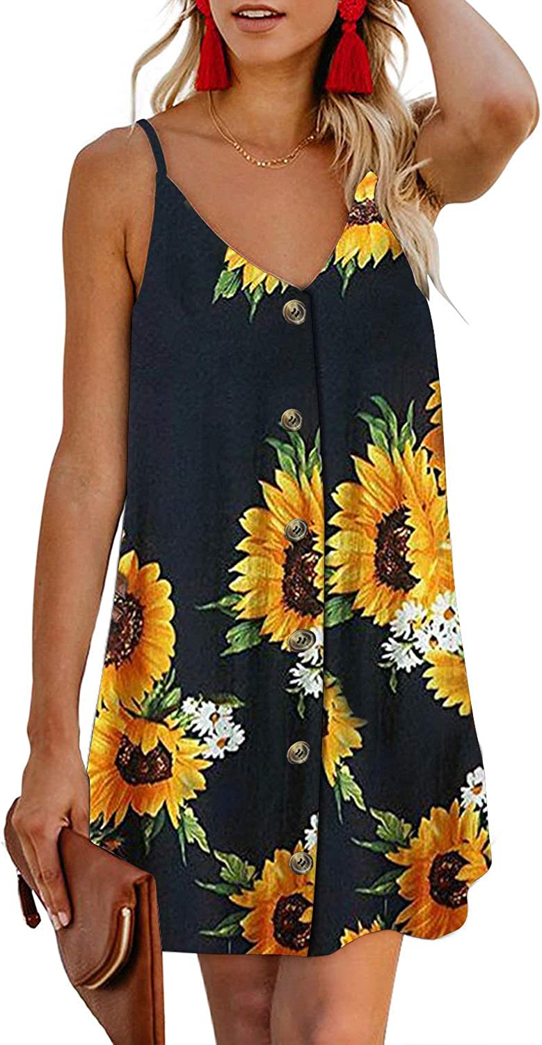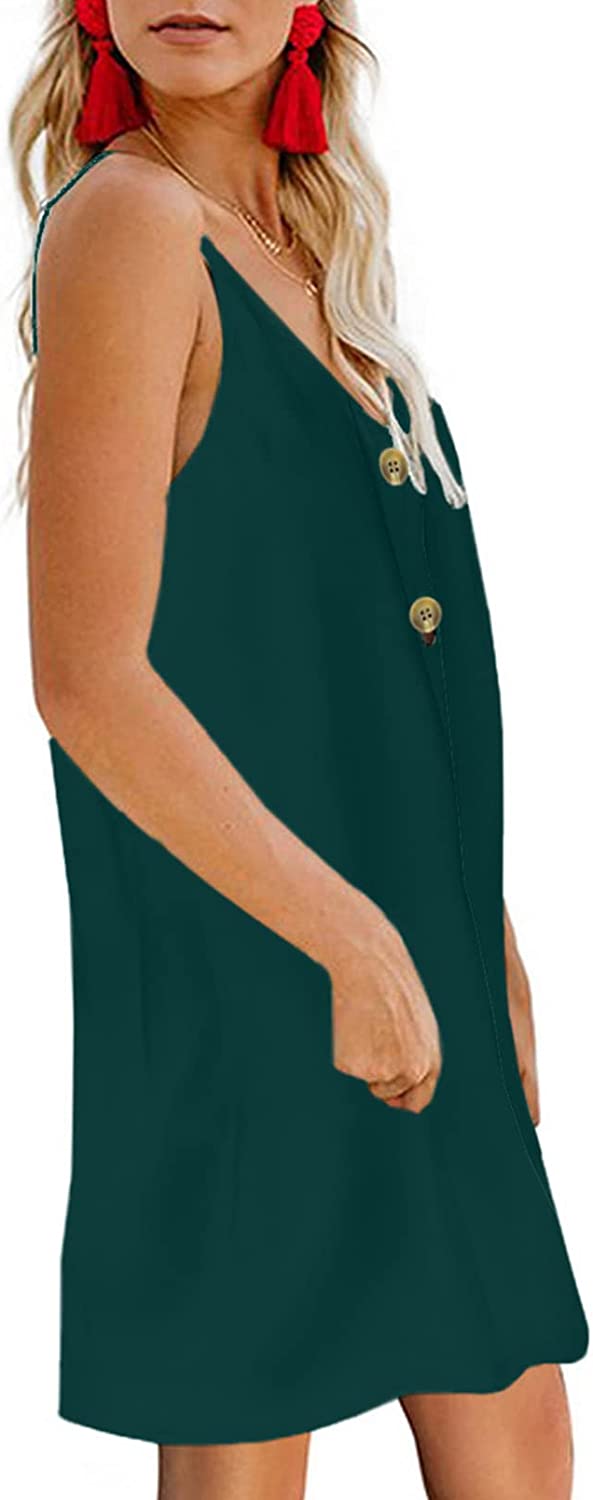 • Features:Adjustable Spaghetti Strap,Sexy V Neck Sleeveless, Button Front Decoration, Casual Loose Fit Swing Tank Dress