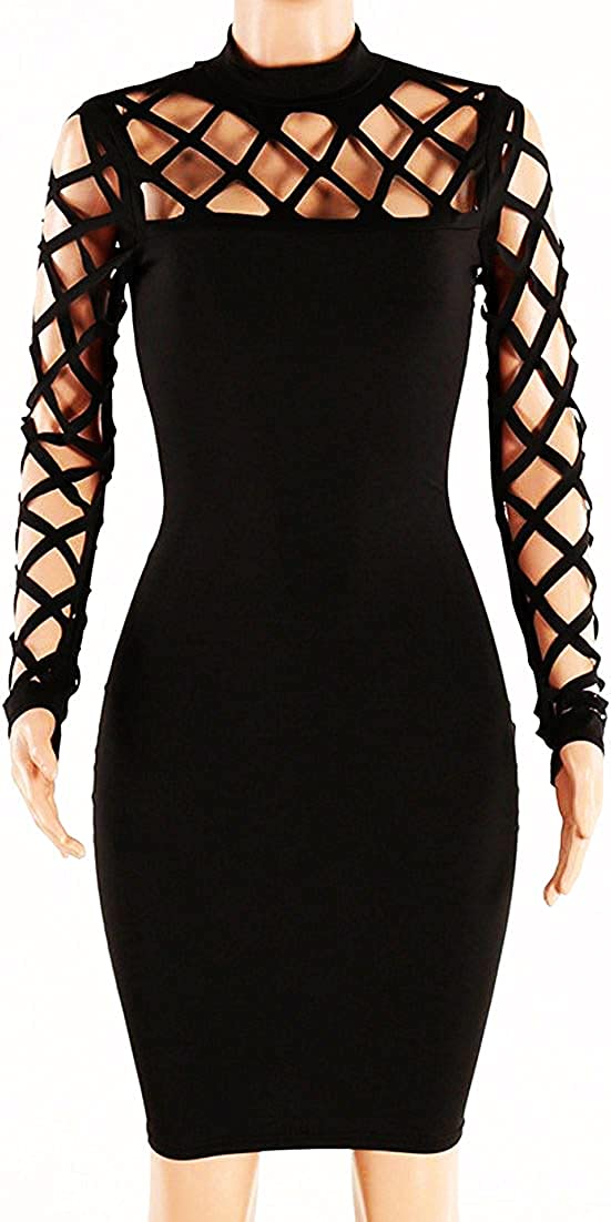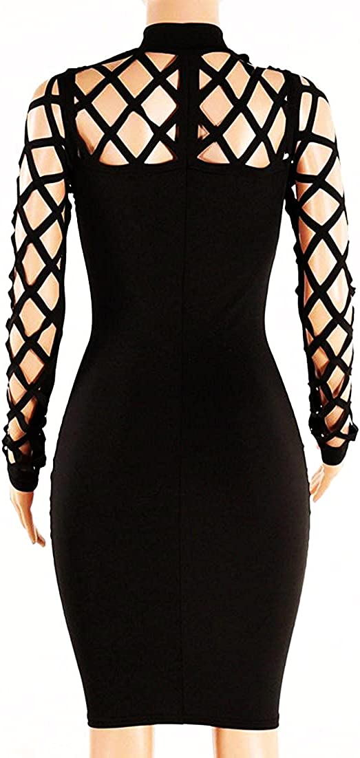 Package Included:1*Women's Black Hollow Out Bandage Clubwear Long Sleeve Bodycon Dresses.