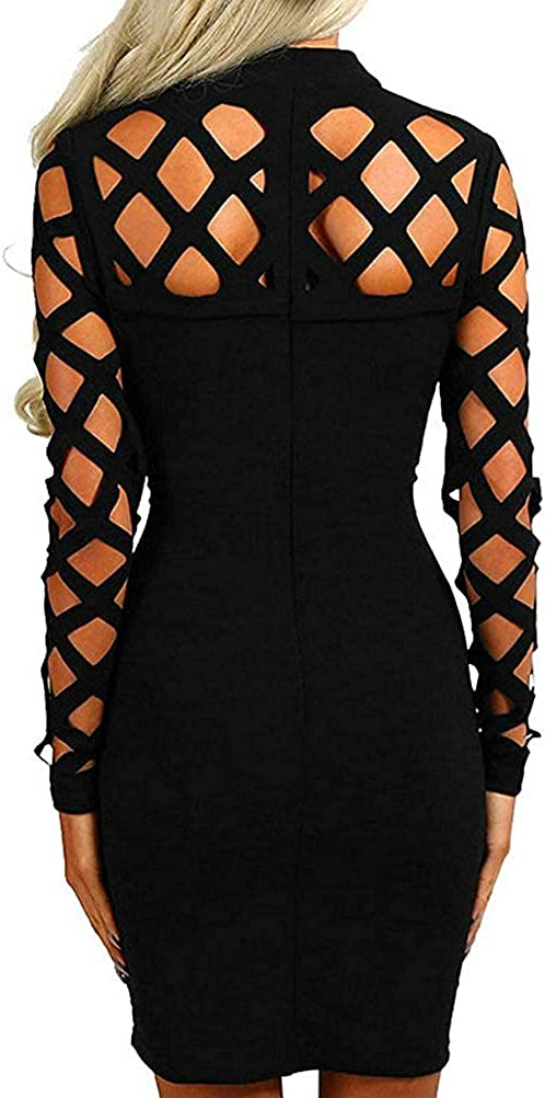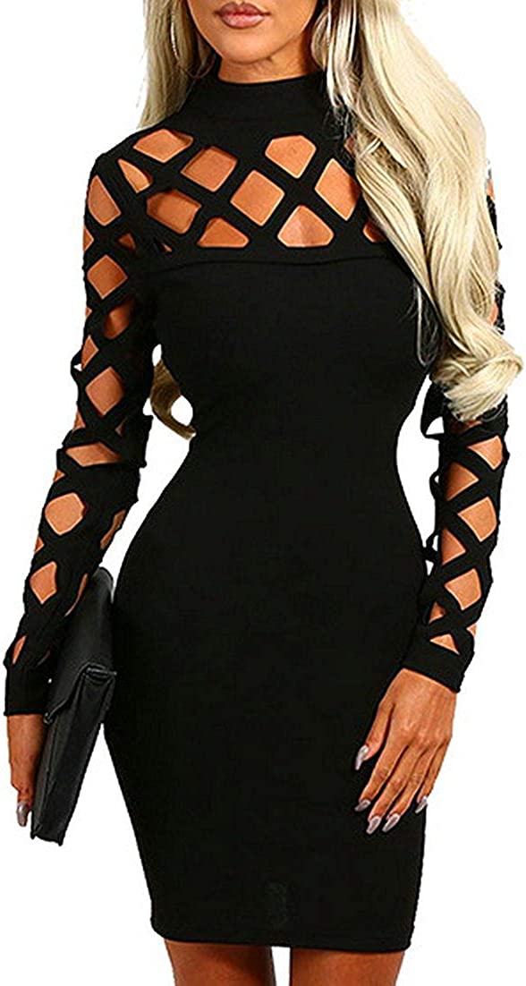 AMiERY Women's Hollow Out Dress Bandage Clubwear Long Sleeve Bodycon Dresses