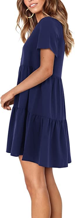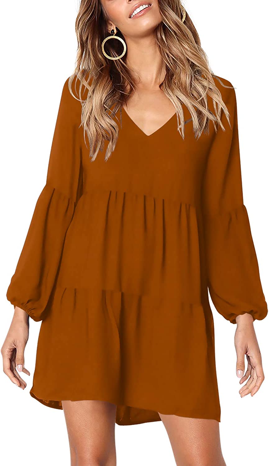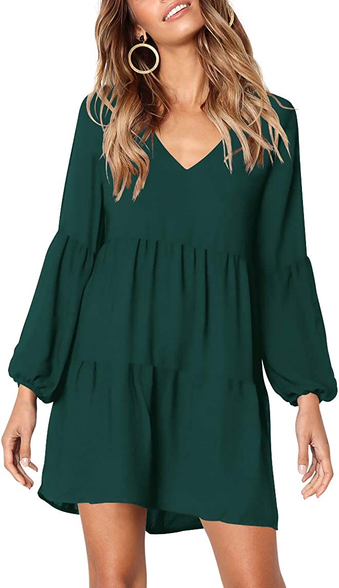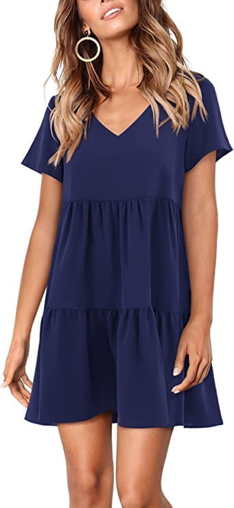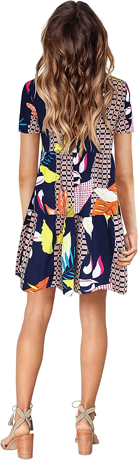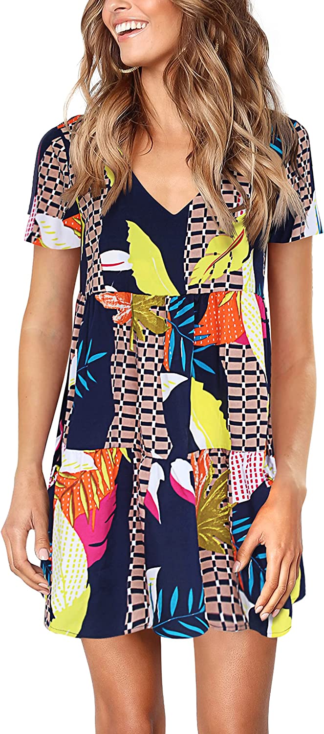Amoretu Women Summer Tunic Dress V Neck Casual Loose Flowy Swing Shift Dresses