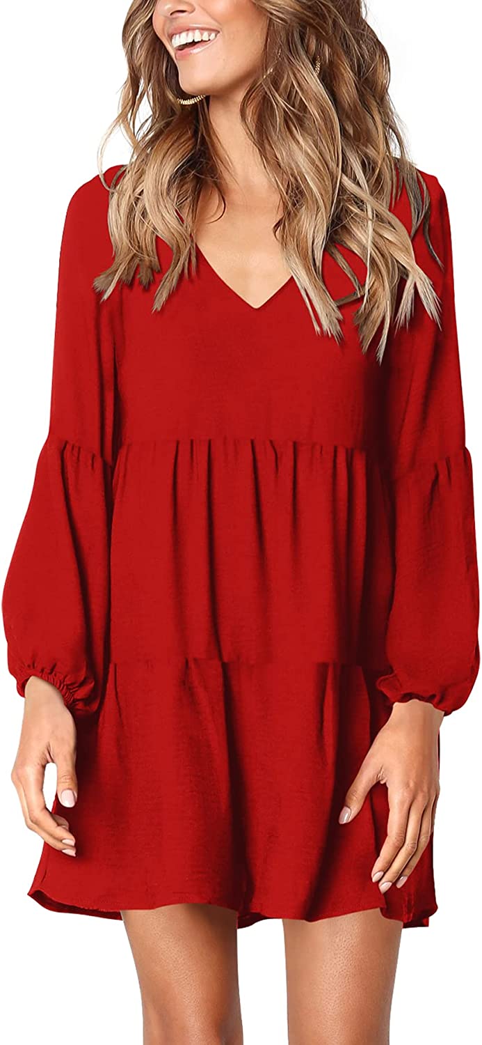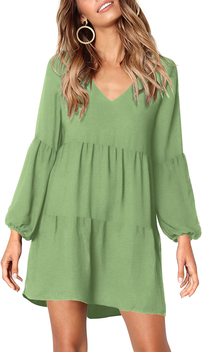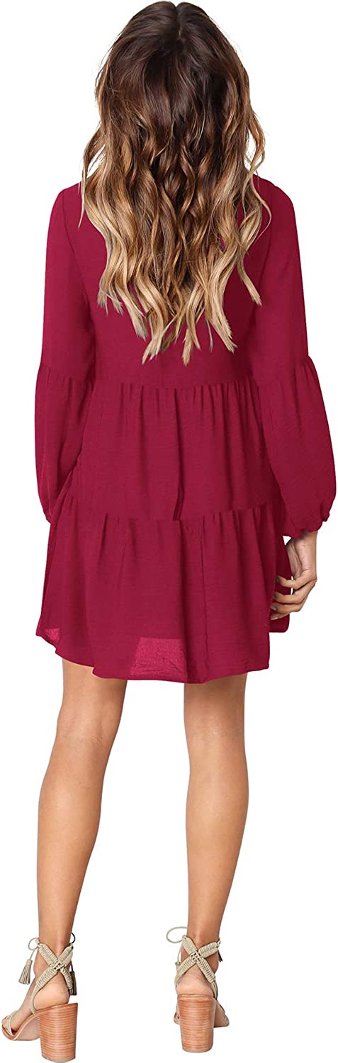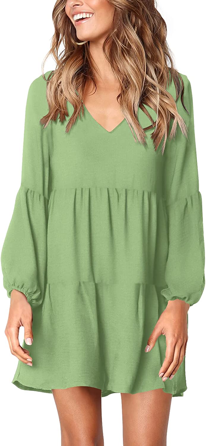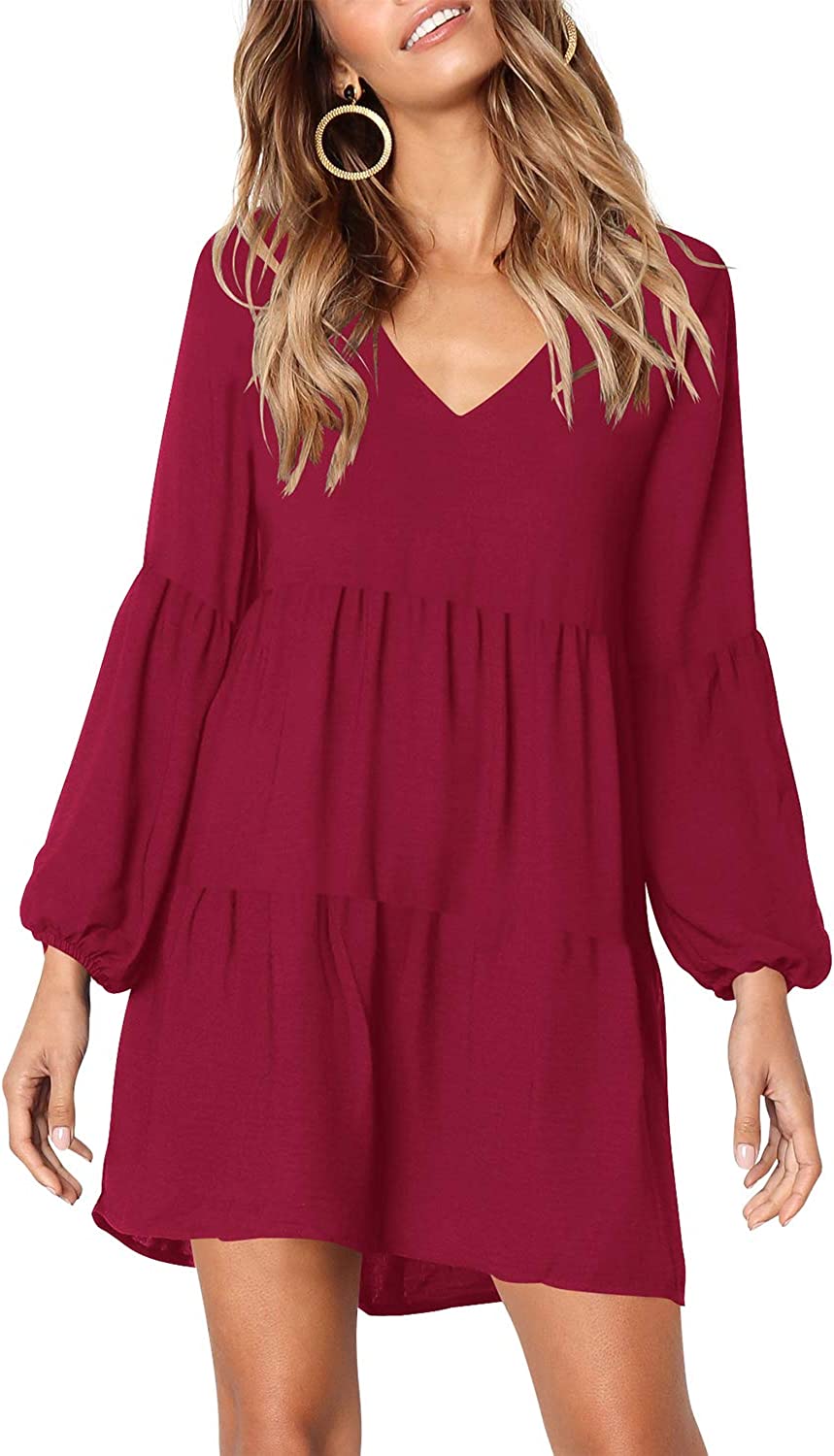 Amoretu Women Summer Tunic Dress V Neck Casual Loose Flowy Swing Shift Dresses