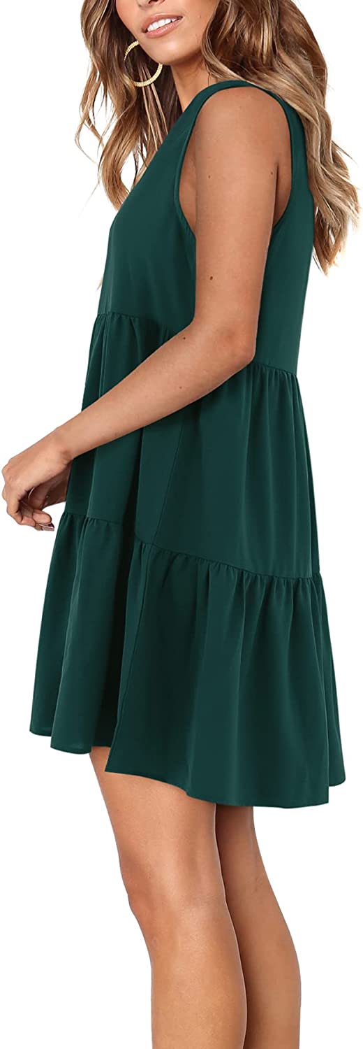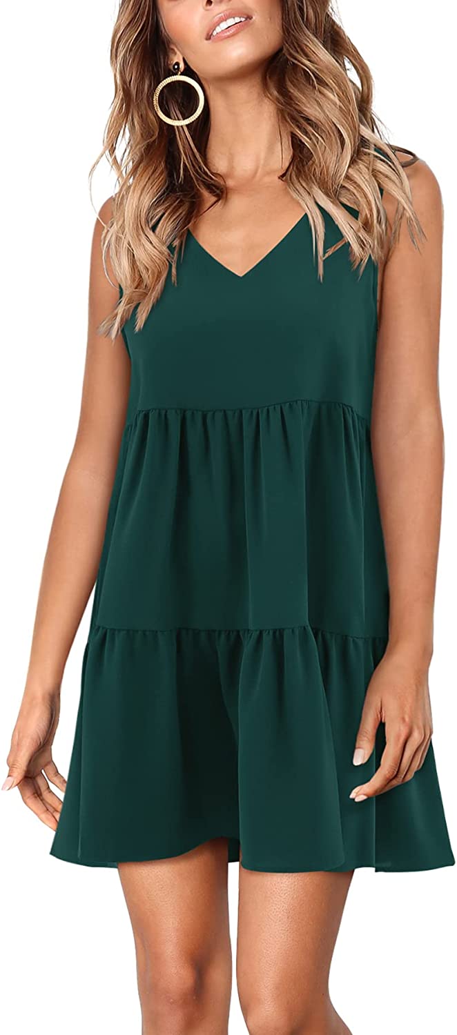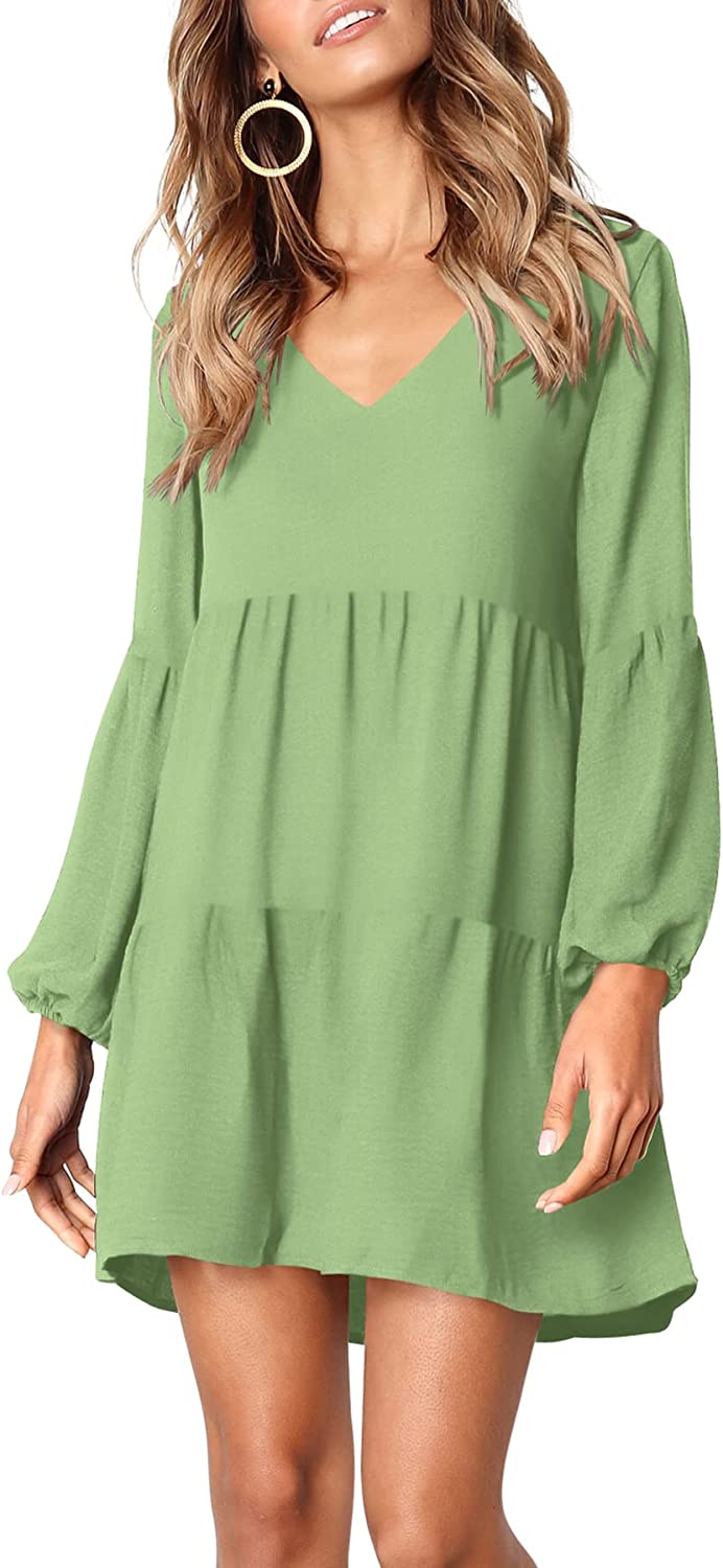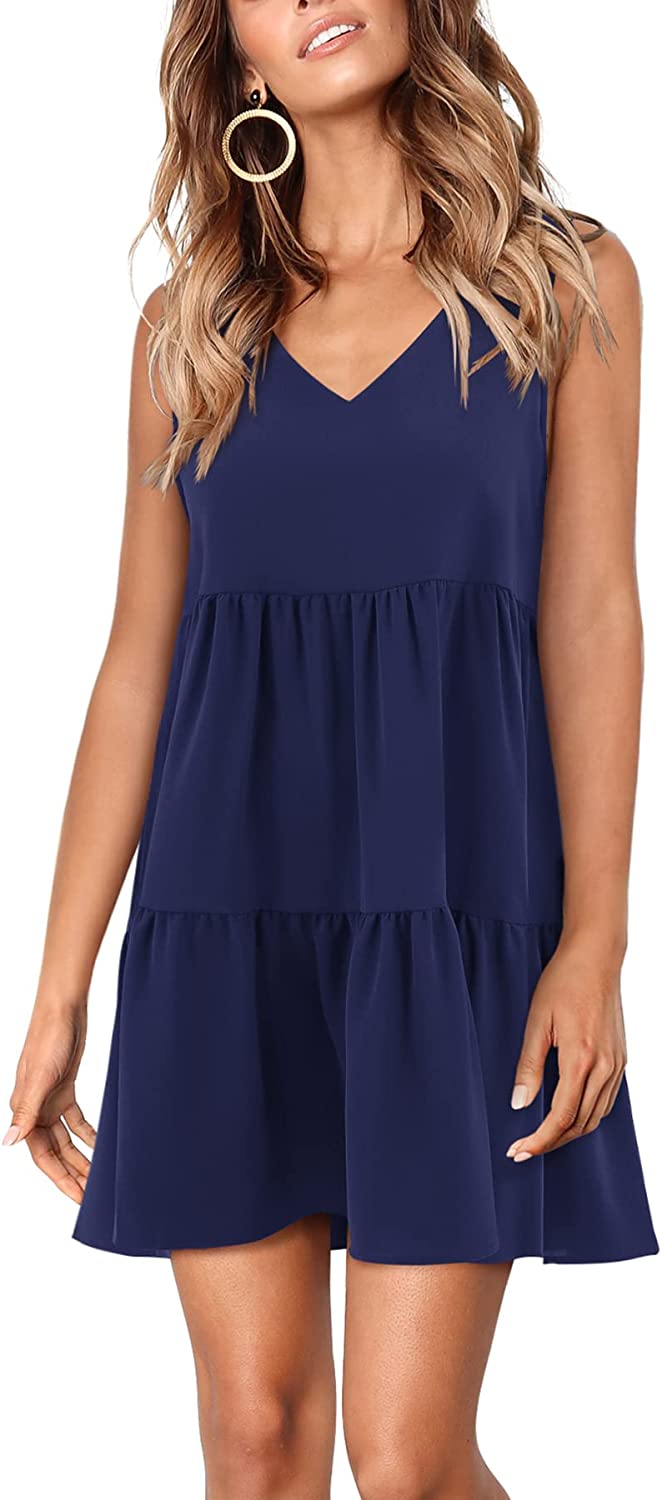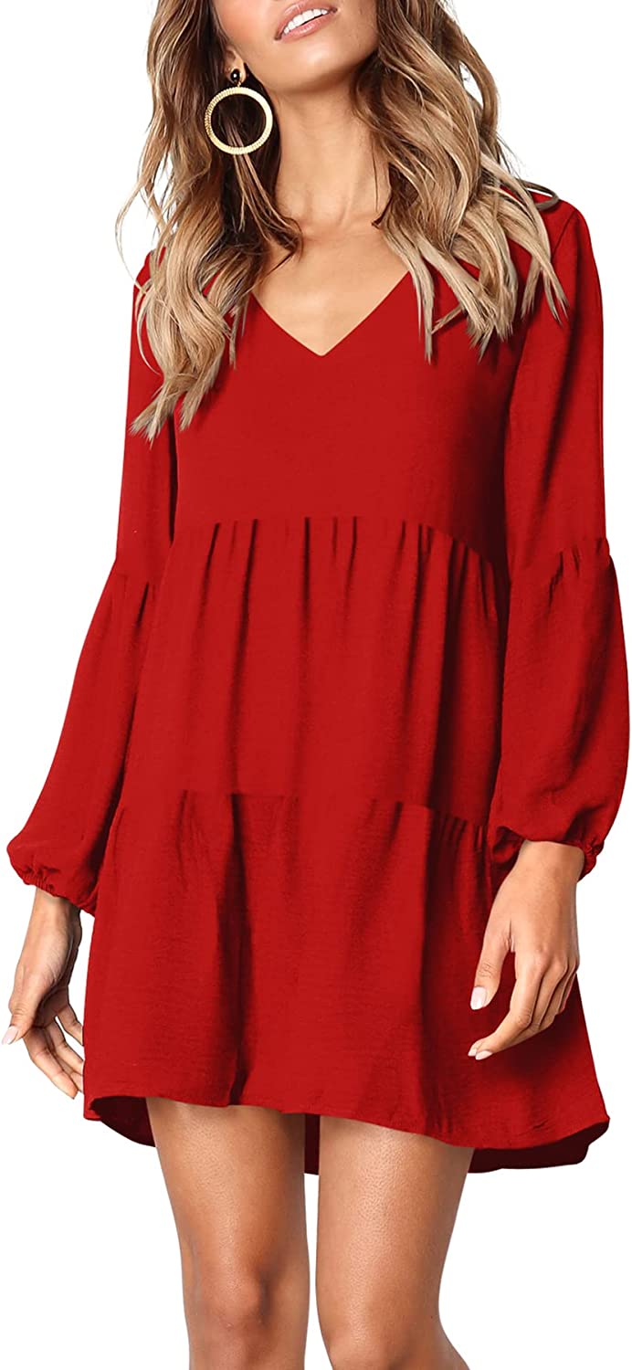 Amoretu Women Summer Tunic Dress V Neck Casual Loose Flowy Swing Shift Dresses