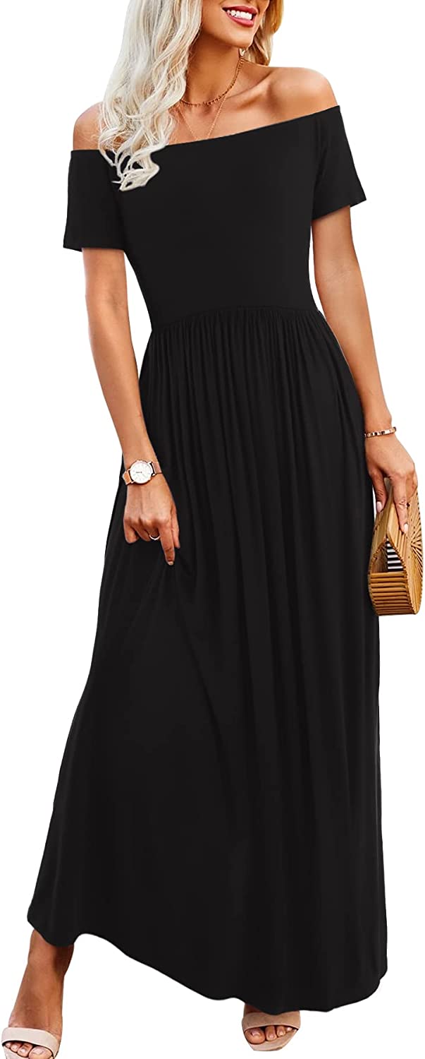 Amoretu Womens Casual Short/Long Sleeve Off Shoulder Beach Long Maxi Dress with Pocket