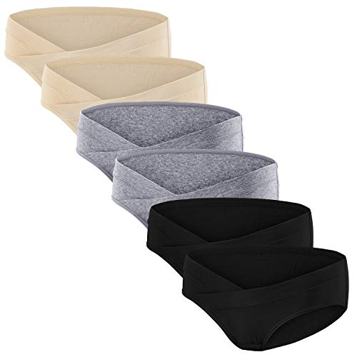 Details: Angelhood 6 Pack Under the Bump Cotton Maternity Panties ❤Under the bump: Low rise maternity panties featuring with moderate full coverage fit perfectly under the bump without pressure, rolling and slipping. ❤V shape low rise: V shape design can accommodate your growing bump and won’t bring you a sense of boundage. Also, there is no any scratch and chafing when you wear our panties ❤Stay-Fit Design: Provide the suitable fit for expectant mommies.The heightened rear waist can prevent slipping effectively. It can also shaped your charming hip perfectly. Specifications: Material: 95% cotton & 5% spandex. Design Details: V-shaped, High Waist, Stretchable. Color: Pink, Blue, Beige, White, Gray,Black. Package: 6 pcs per pack. Why you choose our maternity underwear? Soft and Comfortable: 95% cotton, 5% Spandex. Natural combed cotton, ultra soft and breathable. Super Elastic: Stretchy fabric offers better support under belly and no deformation Safe and Reliable: All panties' material is 100% active dying, NO phthalates, strictly security for pregnancy health. Easy to wash: Machine washable, perfect for busy moms.Non-fading,No deformation. Our design to prevent the belly wrinkles strappled,good for baby growth,wearing the panties from early pregnancy to postpartum recovery; No worry about belly and baby will feel uncomfortable. No bother for baby growing , no pressure and constraint.