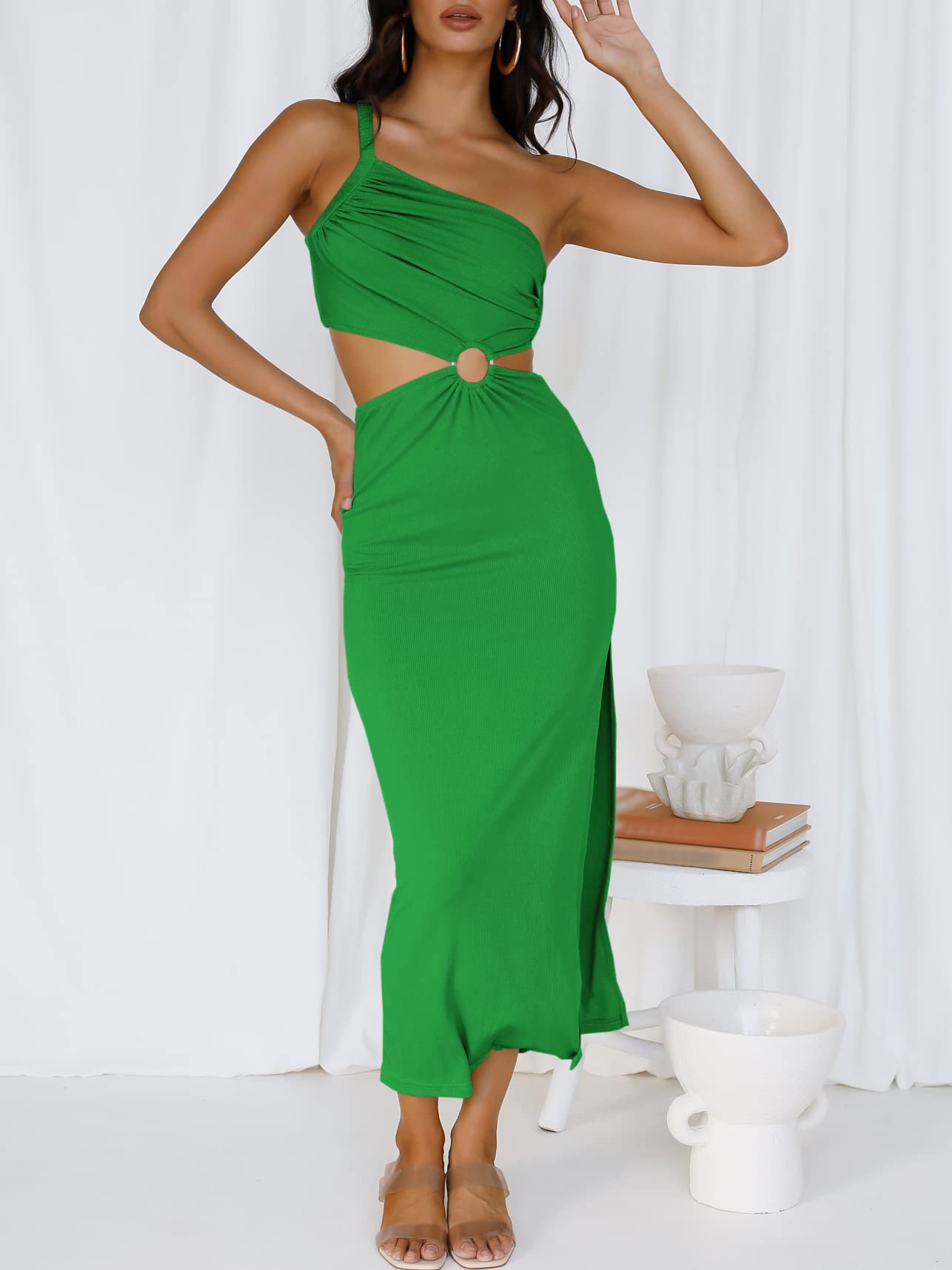 ANRABESS Maxi Dress for Women 2024 Summer Cut Out Semi Formal One Shoulder Sleeveless Wrap Vacation Party Bodycon Fashion Backless Sexy Cocktail Outfits 765shenlv-L