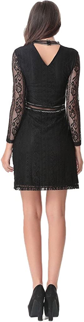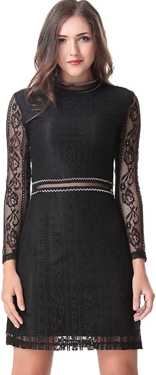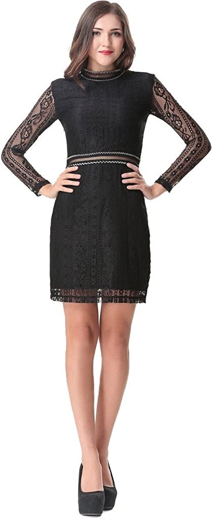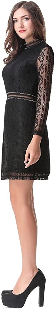 • FEATURES: Sexy and elegant lace dress, above knee length, sheer sleeves, lined, high neckline, sexy V cut on the back, hidden zipper on the side, long sleeve black lace cocktail party dress is super elegant and beautiful you can got tons of compliments!
