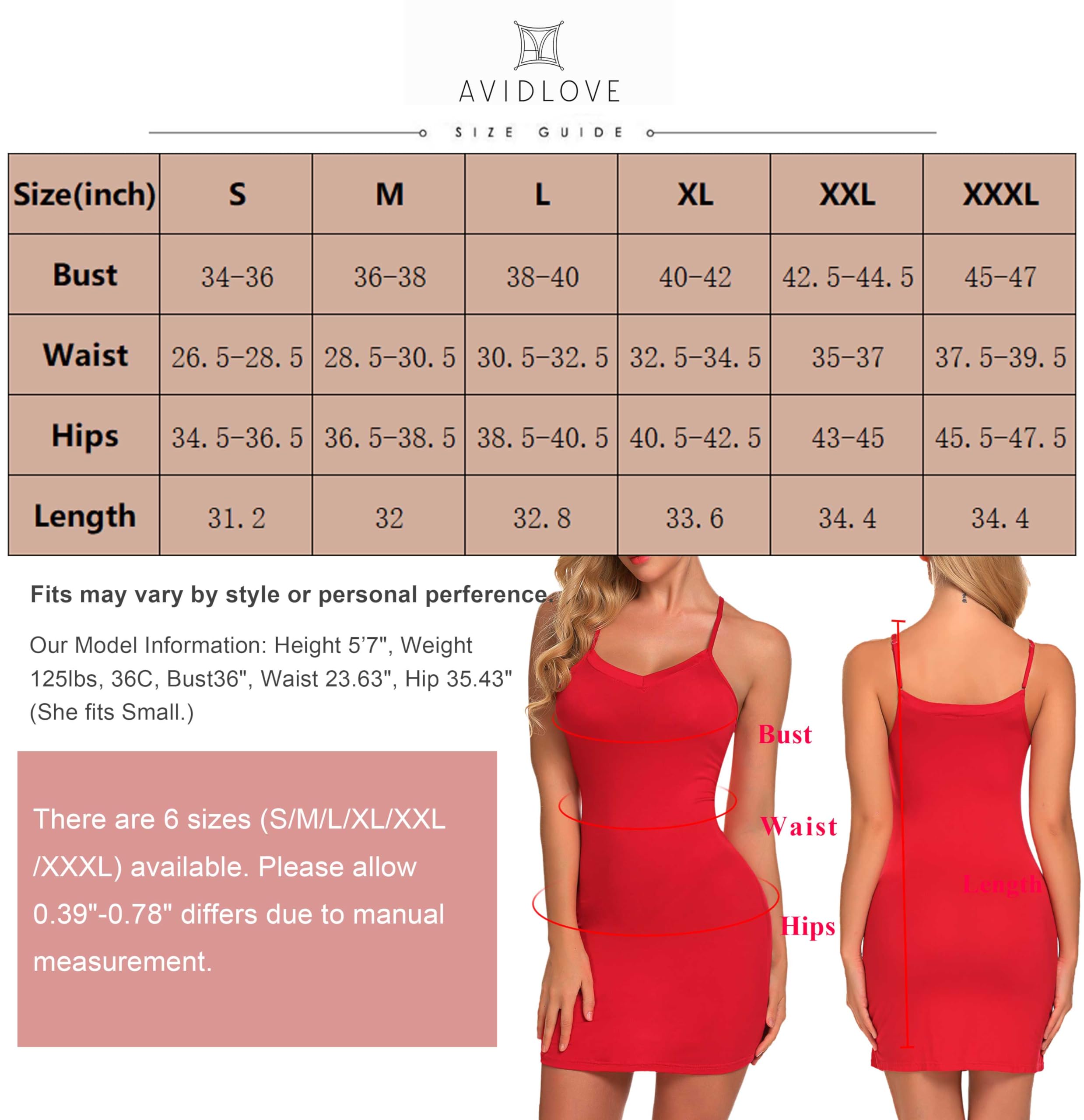 • ★Material: this Avidlove Full Slip Lingerie Dress made of 95% polyester, 5%acrylic, stretchy and breathable.Package Content: 1 x Women Full Slip