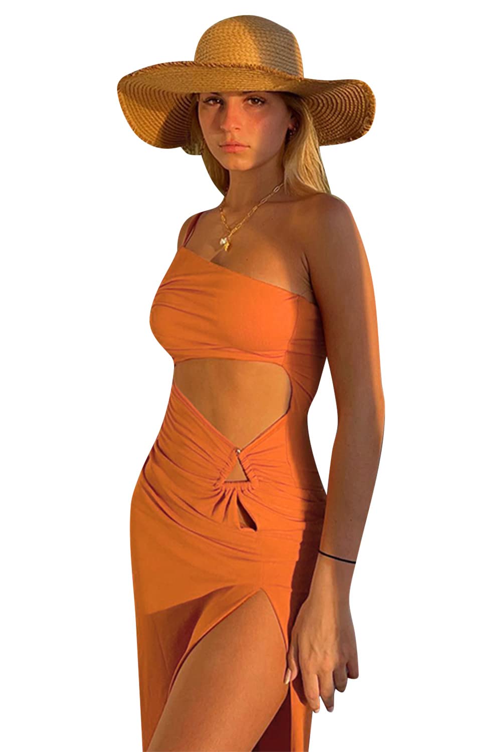 • Style: Womens Y2K Strapless Dress One Shoulder High Slit Sexy Hollow Out Bodycon Dress Mini Sleeveless Cutout Slim Dress Summer Night Party Dress for Adult and Girls.