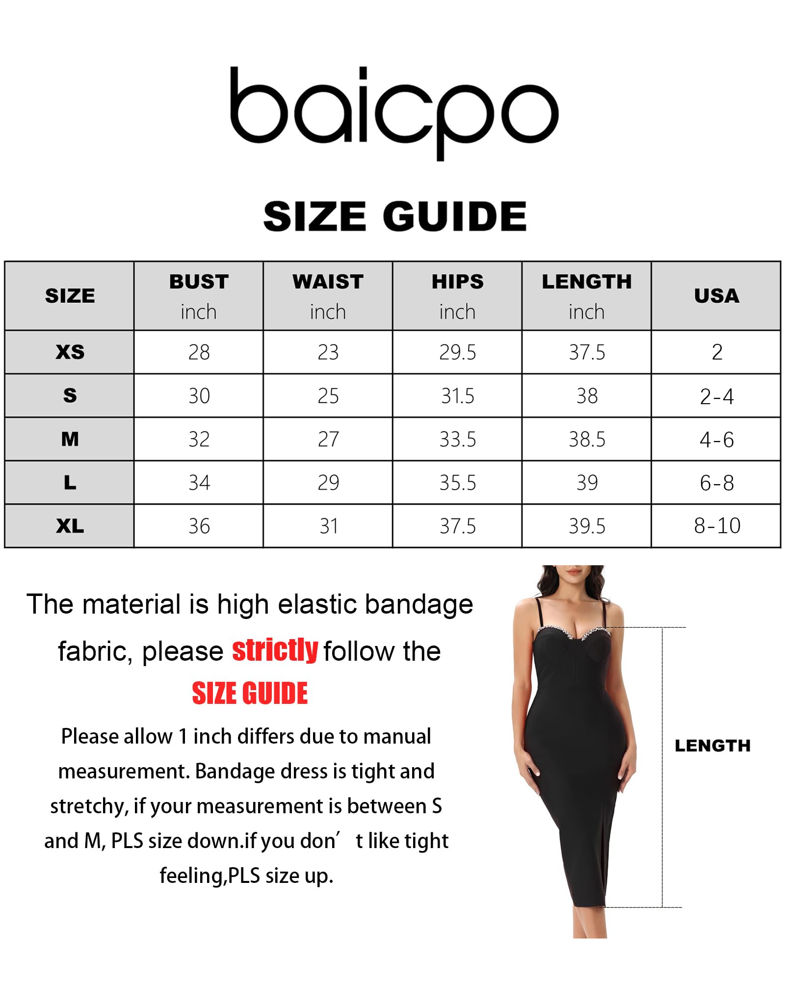 • SIZE REFERENCE: Please allow 1 inch differs due to manual meansurement, please refer to our size guide, this bandage dress is tight and elastic, if your measurement is between S and M, Please size down, if you don't like too tight, please size up.