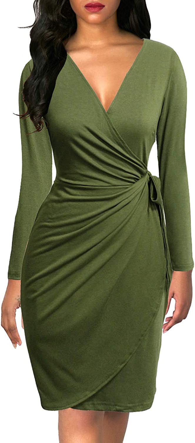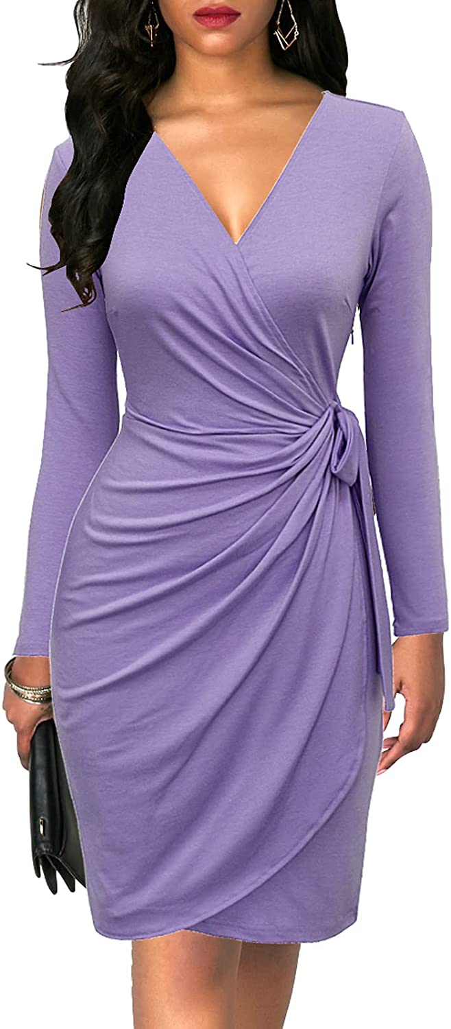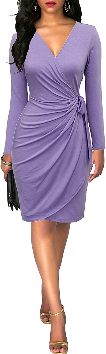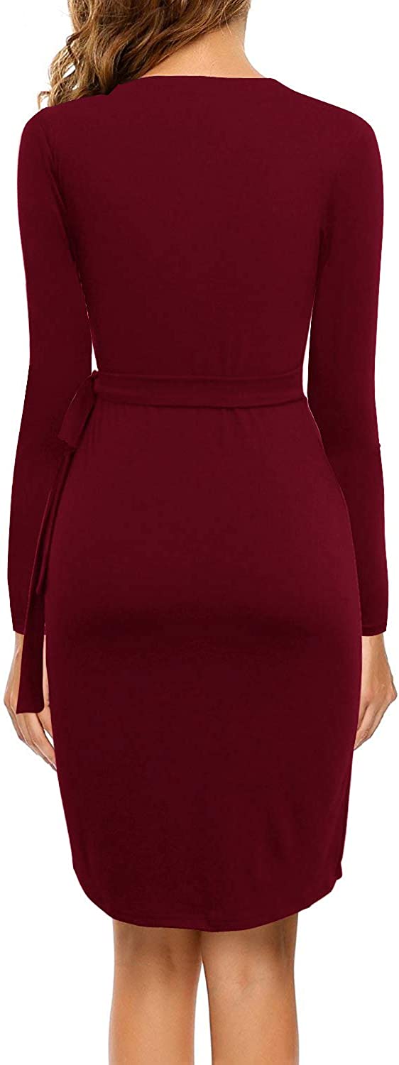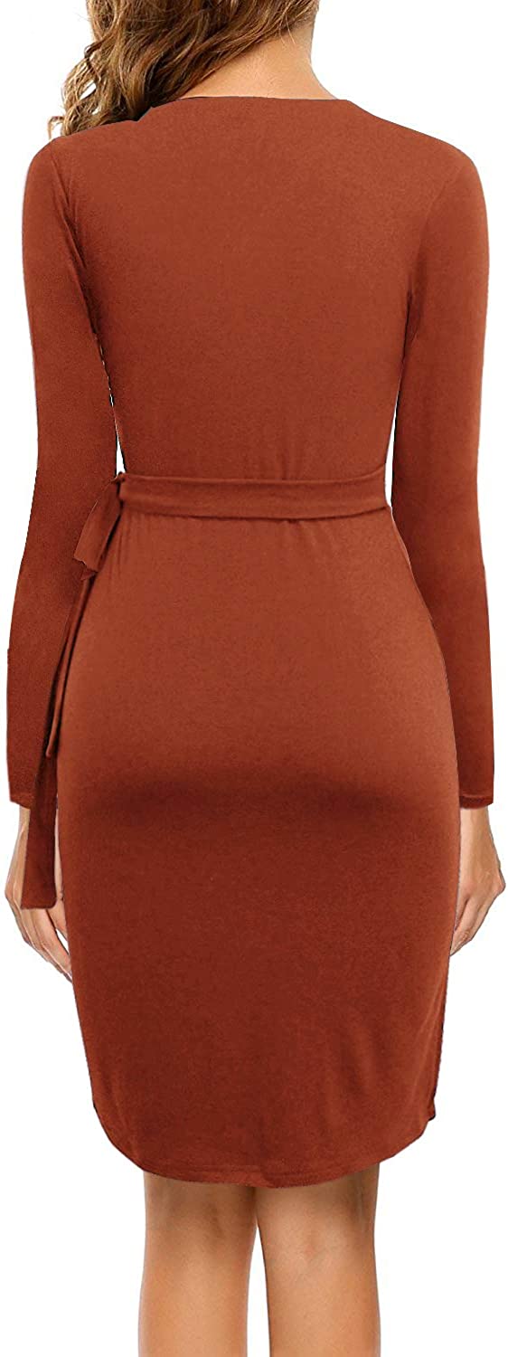 • Sexy Deep V-neck, Long Sleeve Dress, Ruched Draped Waist, Tie Belt (the belt is not detachable), Tulip Hem, Knee-length Faux Wrap Dresses for Women