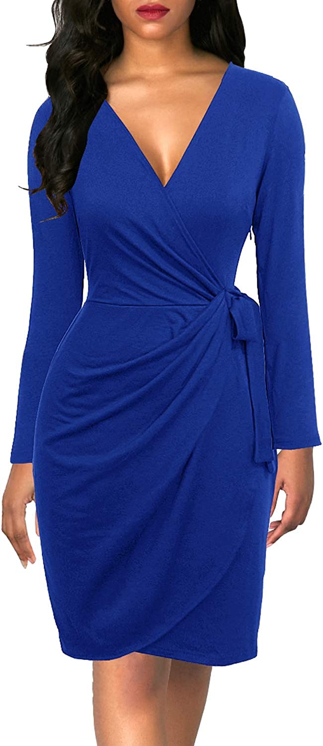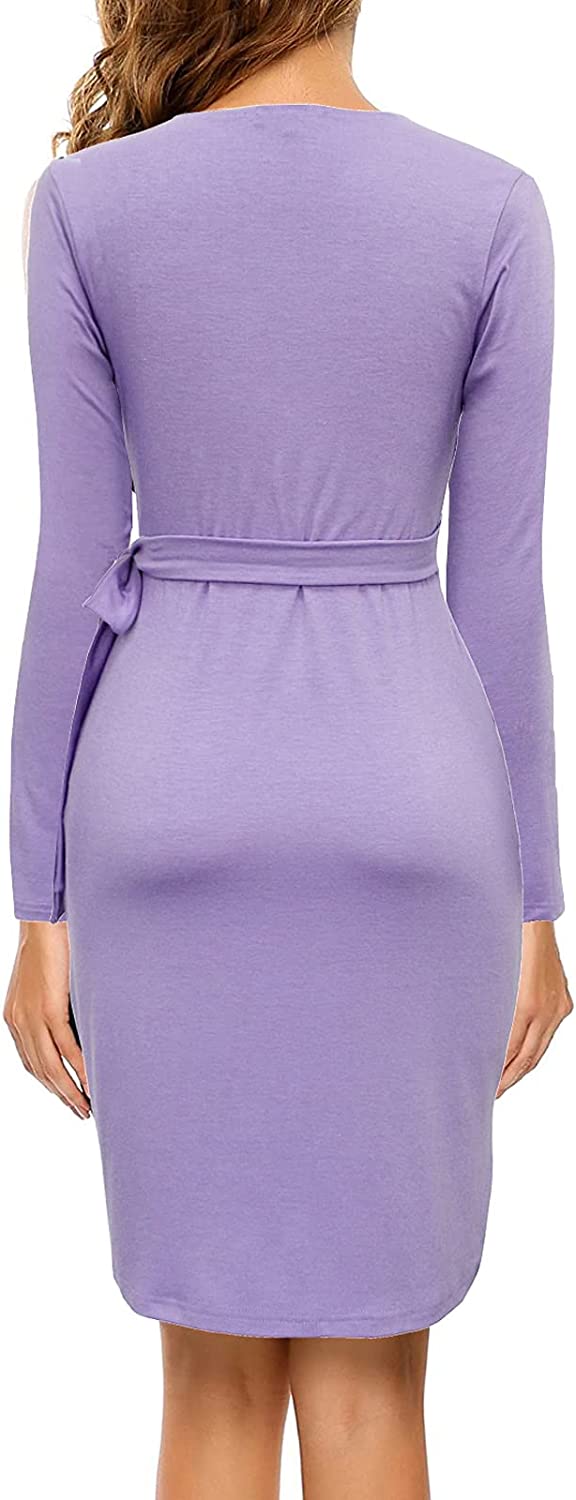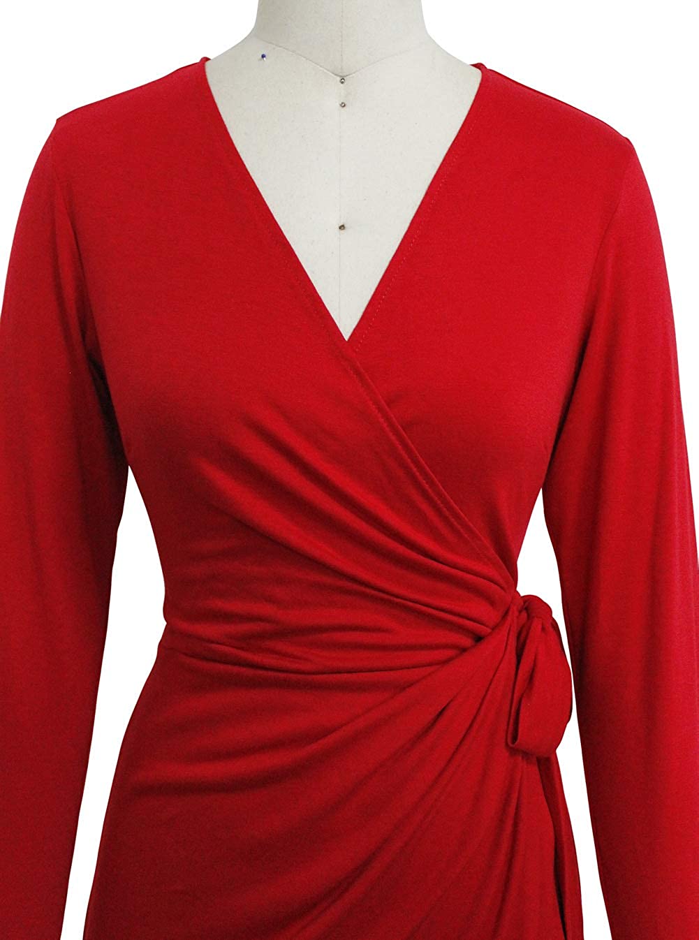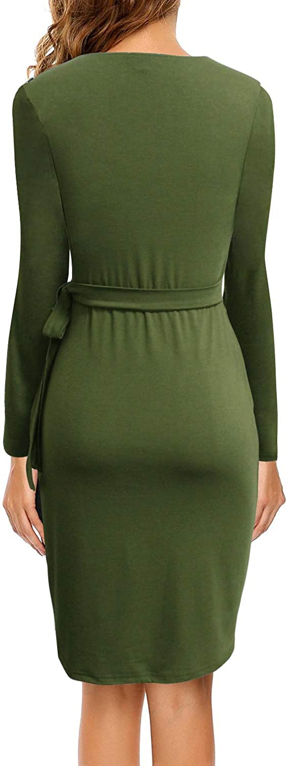 • Sexy Deep V-neck, Long Sleeve Dress, Ruched Draped Waist, Tie Belt (the belt is not detachable), Tulip Hem, Knee-length Faux Wrap Dresses for Women