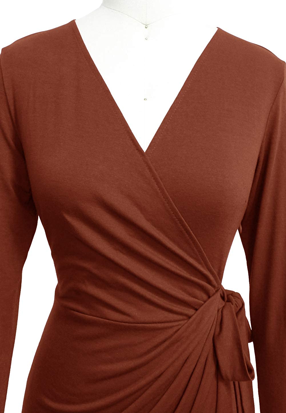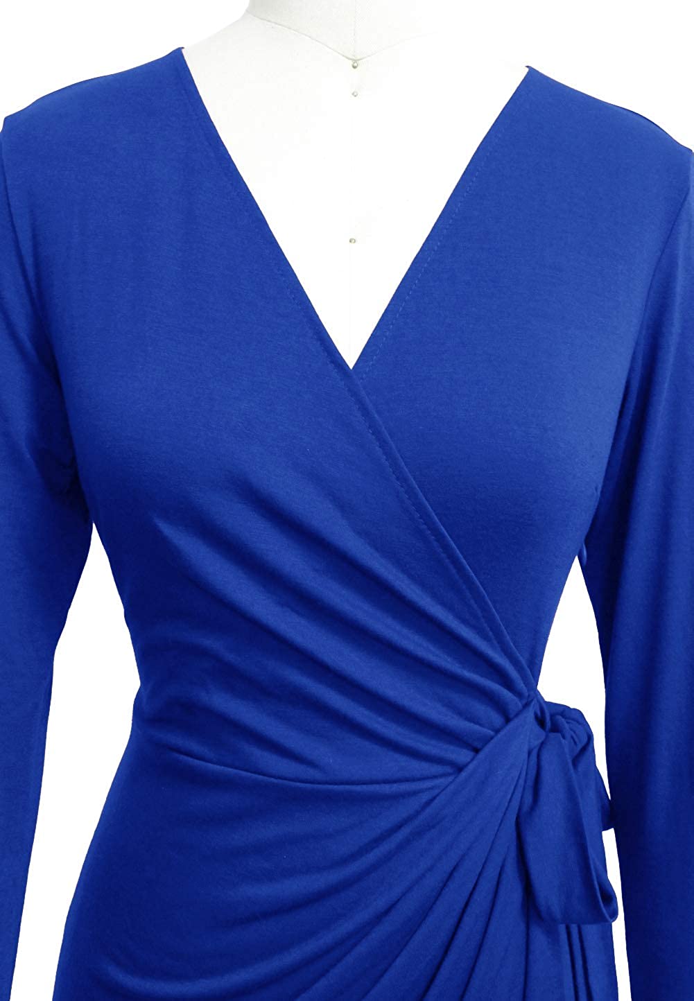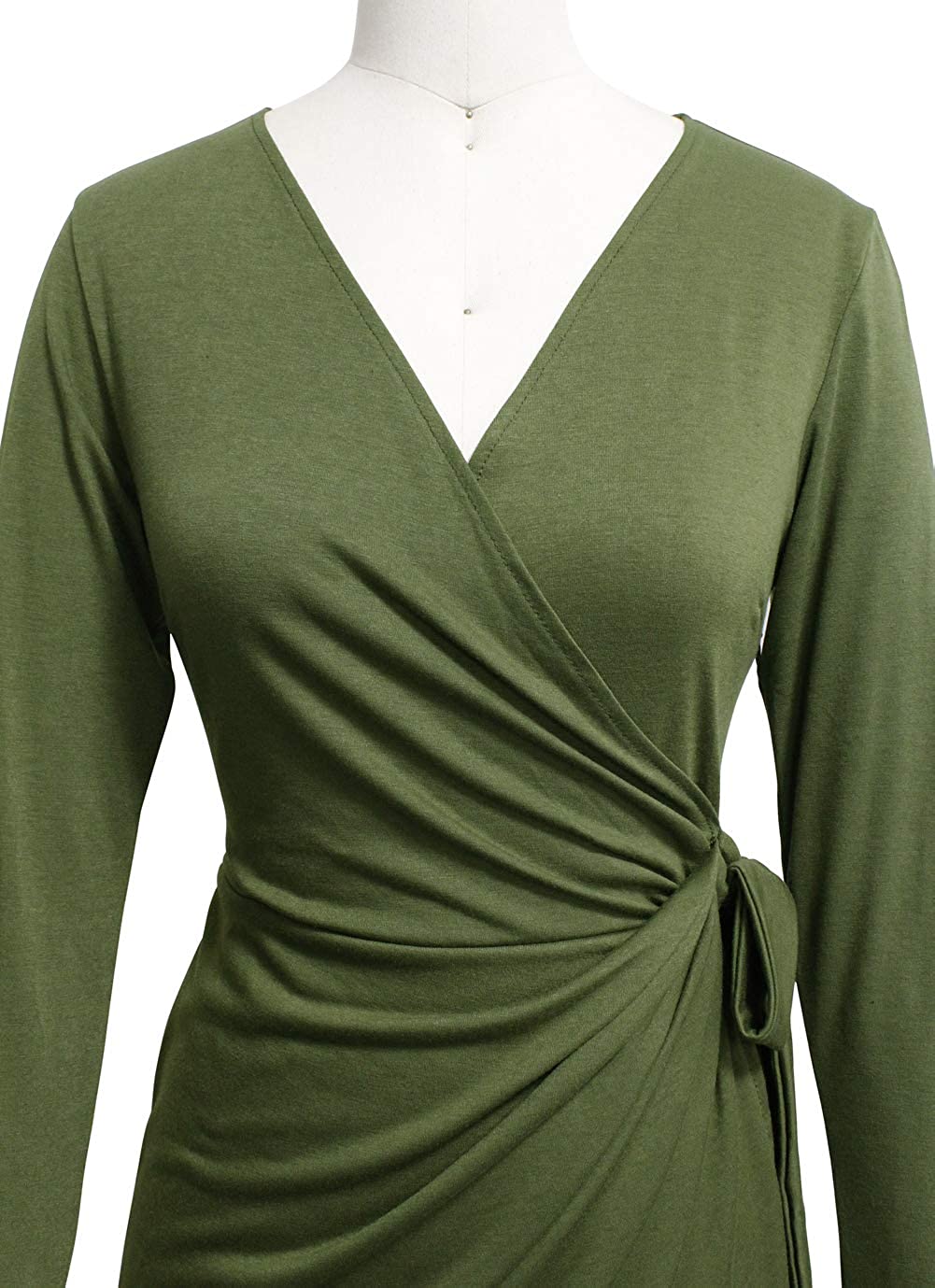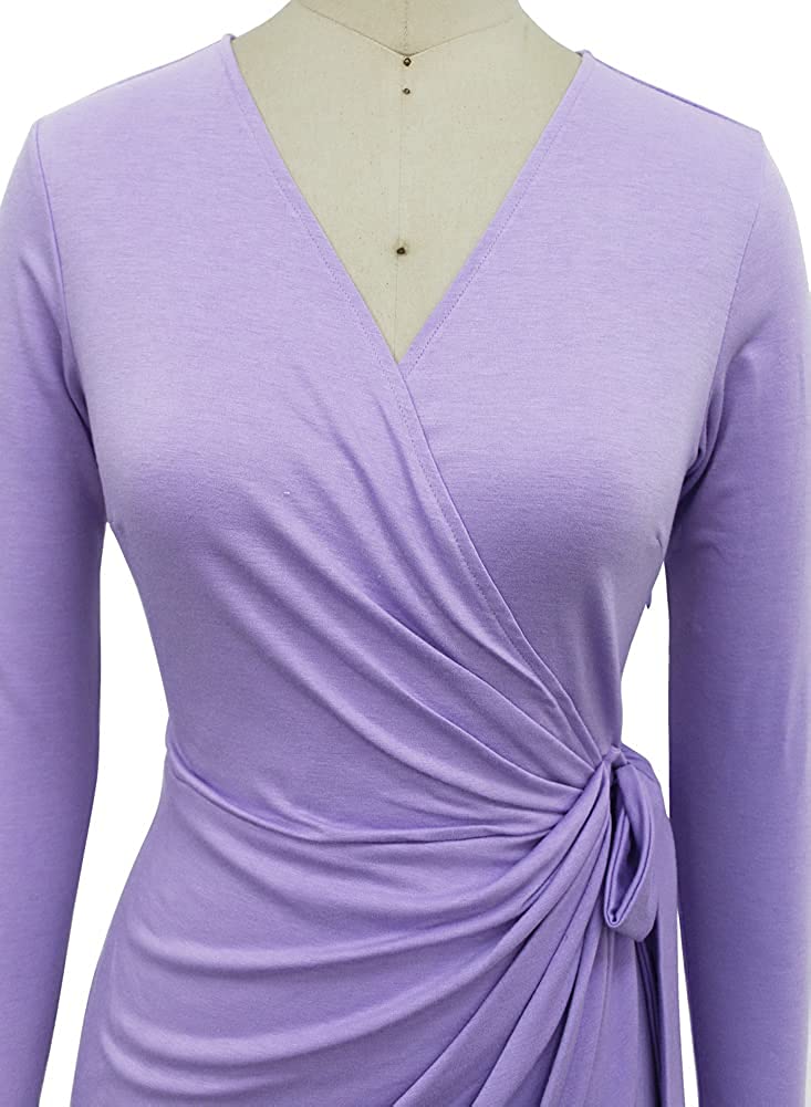• Sexy Deep V-neck, Long Sleeve Dress, Ruched Draped Waist, Tie Belt (the belt is not detachable), Tulip Hem, Knee-length Faux Wrap Dresses for Women