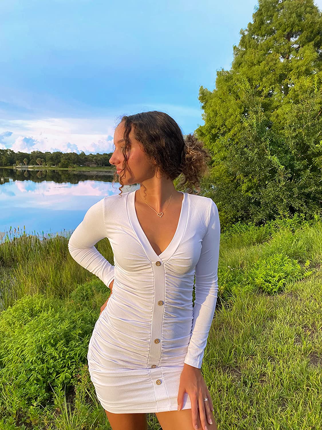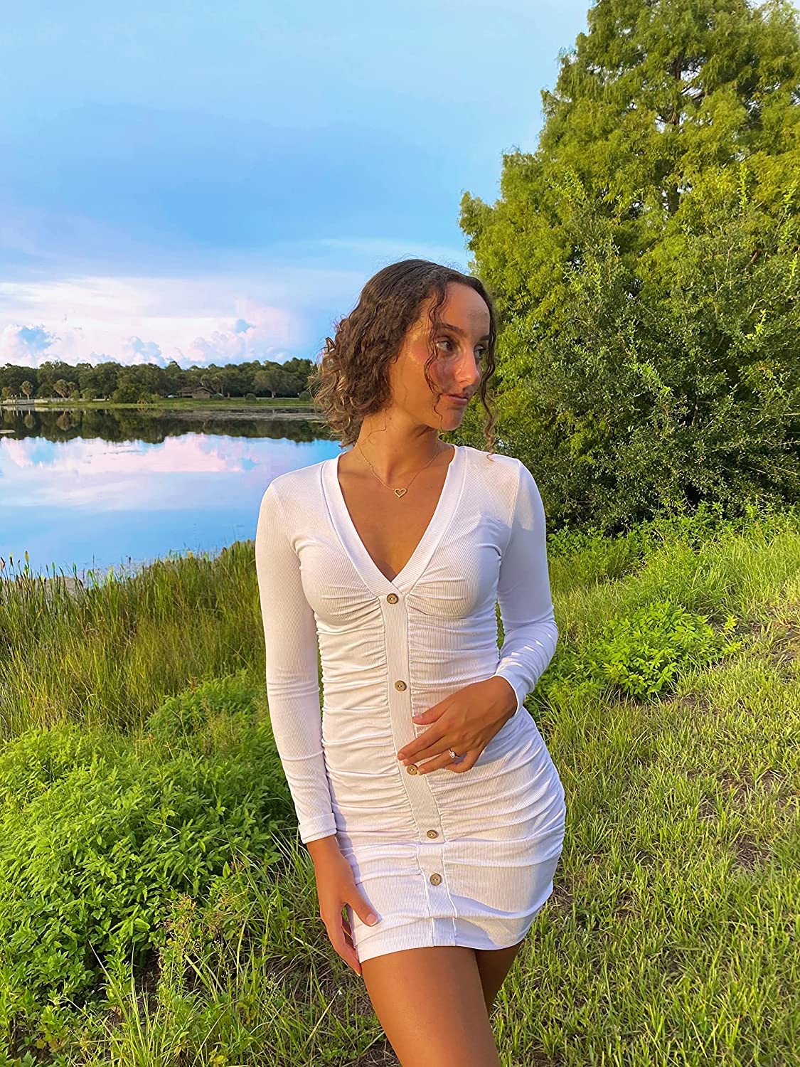 • summer dresses for women 2022/sexy dresses for women/womens fall fashion 2022/sexy dresses for women date night/bodycon dresses for women/fall clothes for women 2022/white dress women/white dress/casual dresses for women/women's club & night out dresses/button down dress for women/short sleeve bodycon dress/white cocktail dress for women/white bodycon dresses for women/sexy dress for women party club night/white bodycon dress/short black dress/ruched button down dress