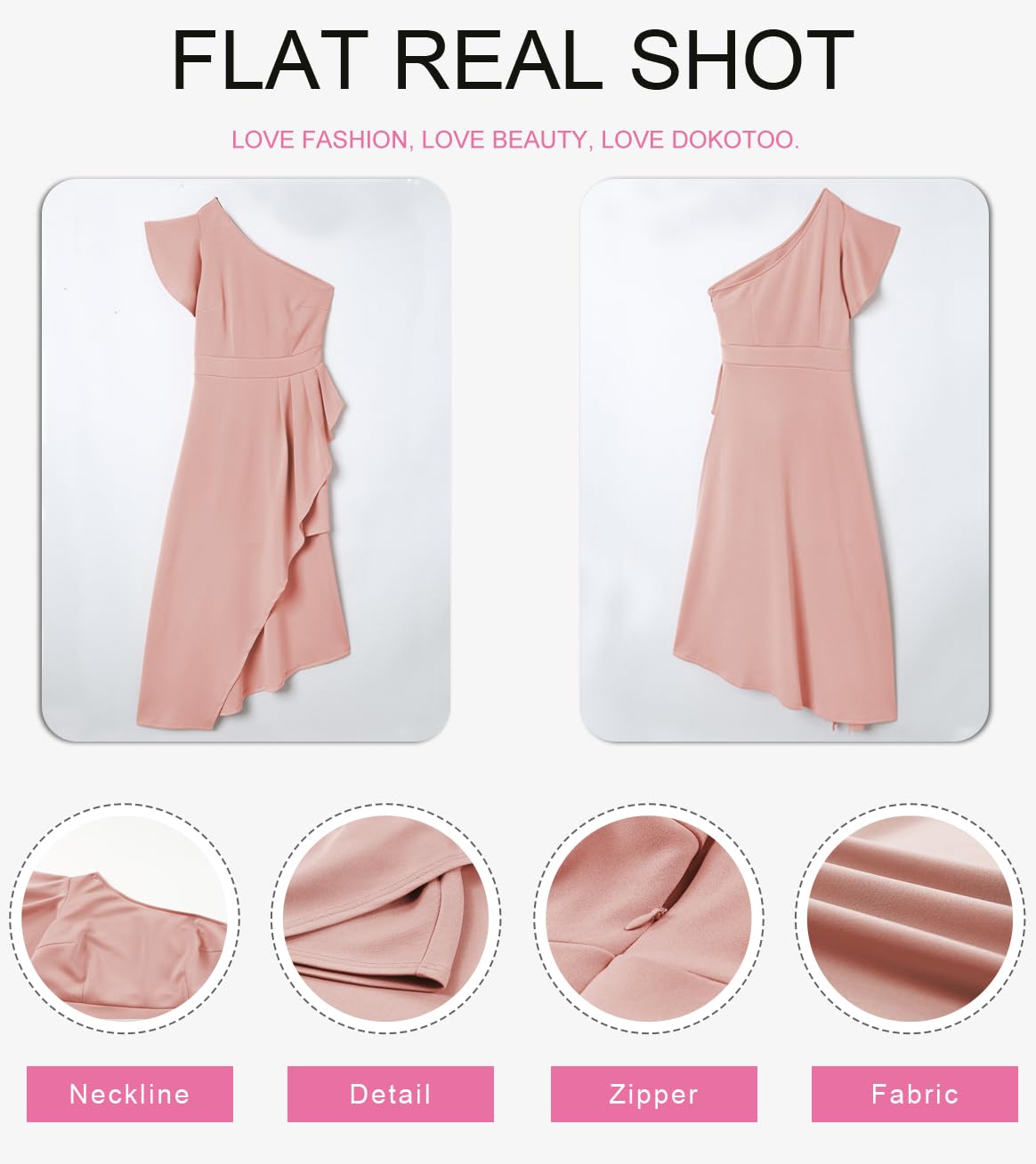 Dokotoo Womens Spring Fashion 2024 One Shoulder Sleeveless Asymmetrical High Low Hem Zipper Bridesmaid Dress Solid Color Mini Dress Empire Waist Dress with Zipper Pink Medium