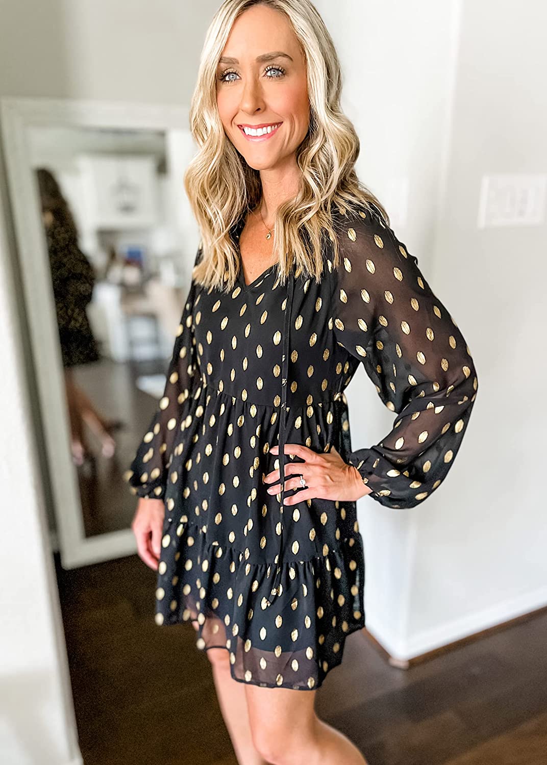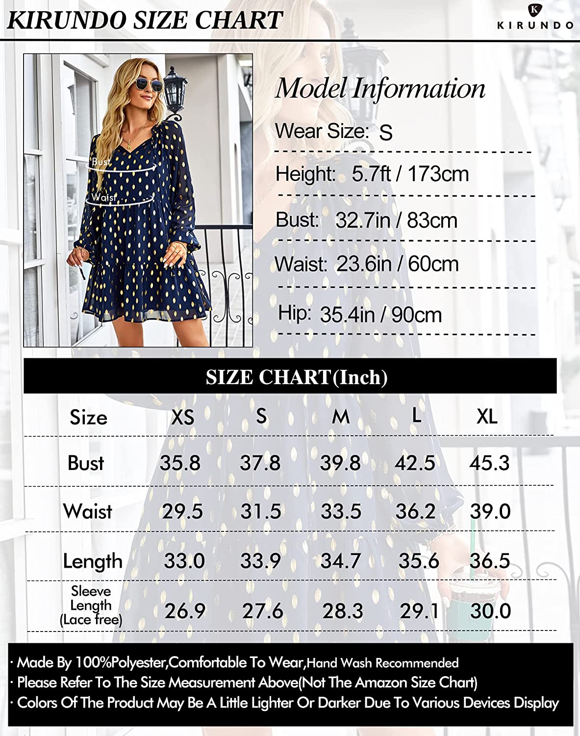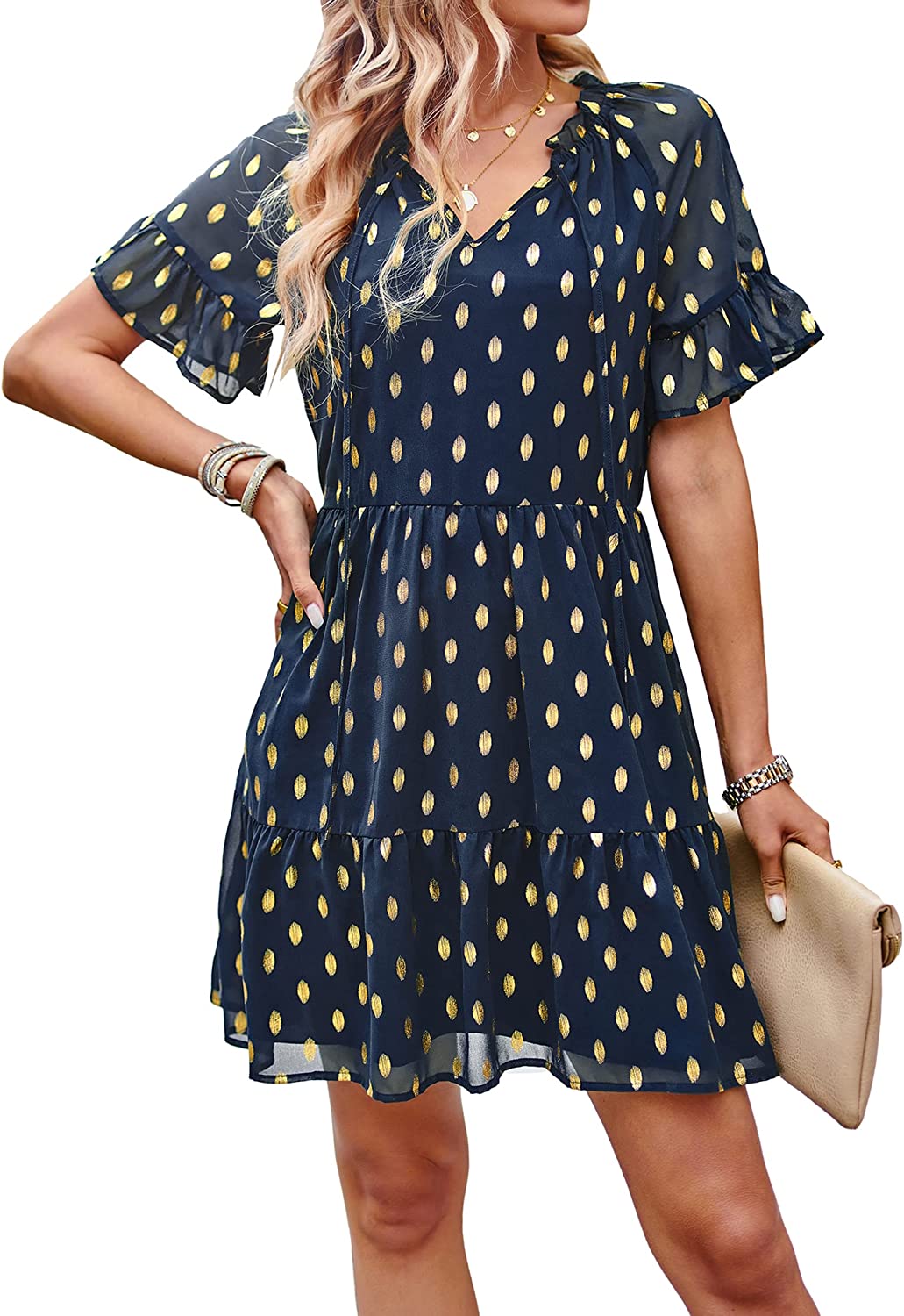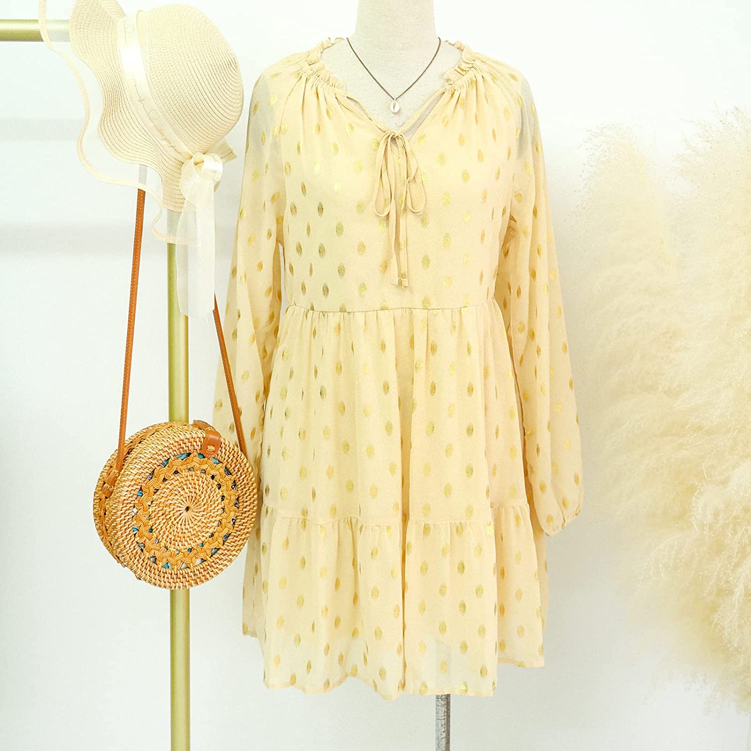 • SUPER COMFORTABLE CHIFFON FABRIC: Polka Dot Dress For Women.100% Polyester, Soft, And Lightweight Fabric Provide All Day Comfort-, and Let You To Enjoy Every Moment.