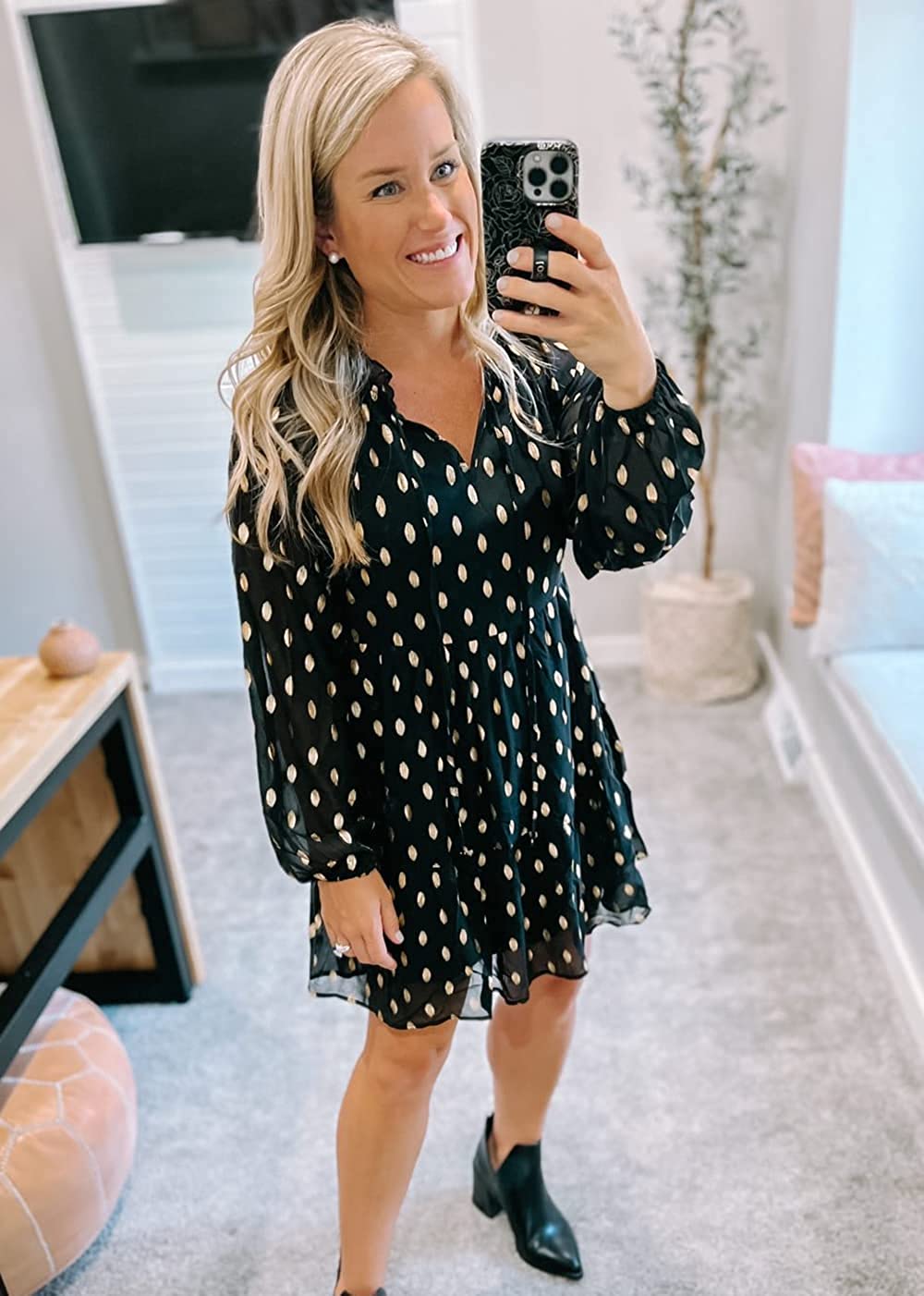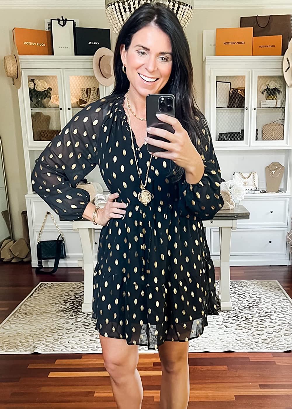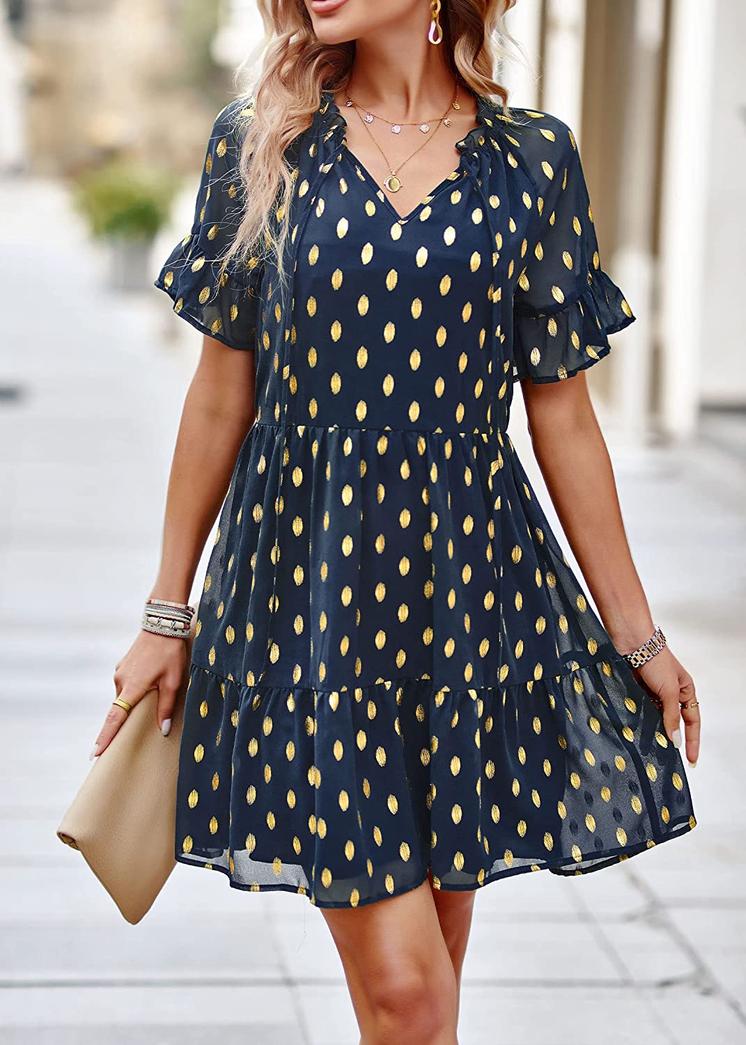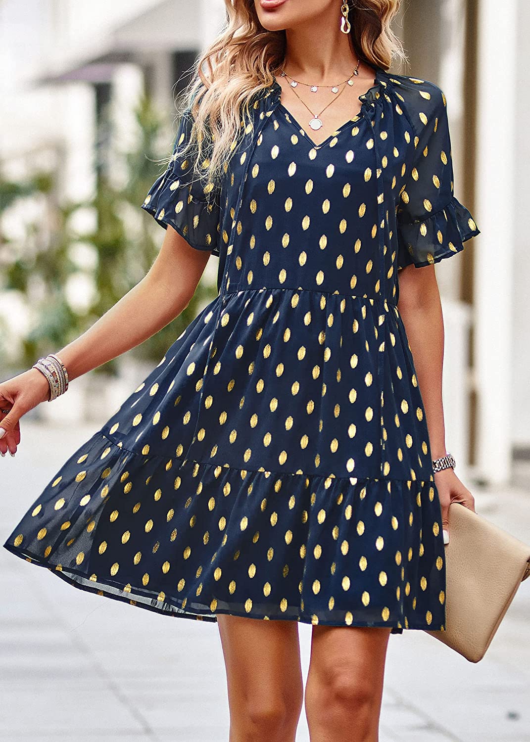 • SUPER COMFORTABLE CHIFFON FABRIC: Polka Dot Dress For Women.100% Polyester, Soft, And Lightweight Fabric Provide All Day Comfort-, and Let You To Enjoy Every Moment.