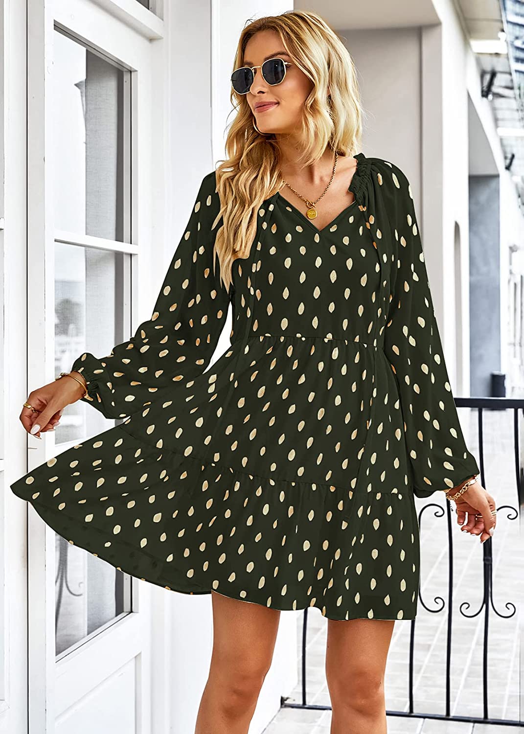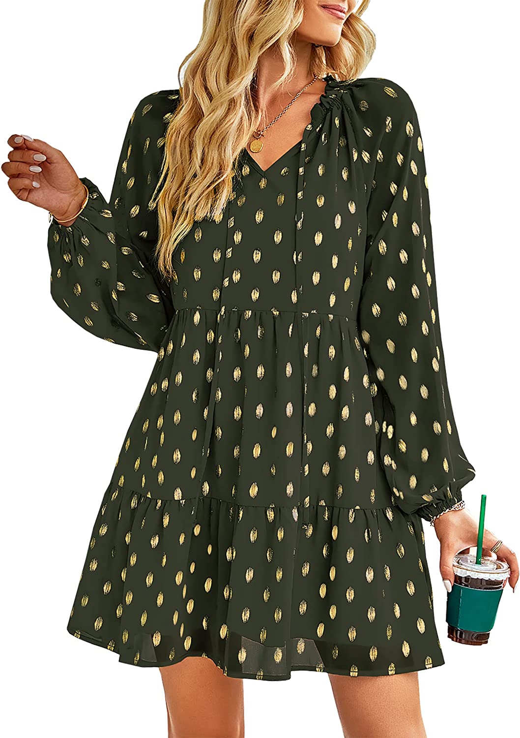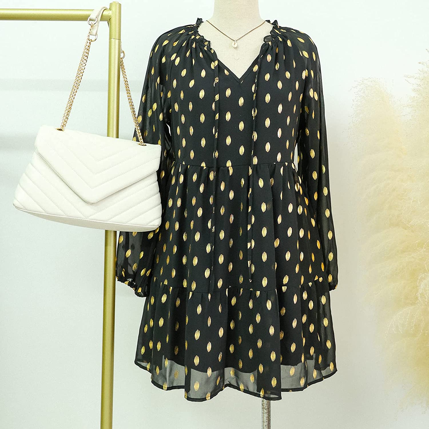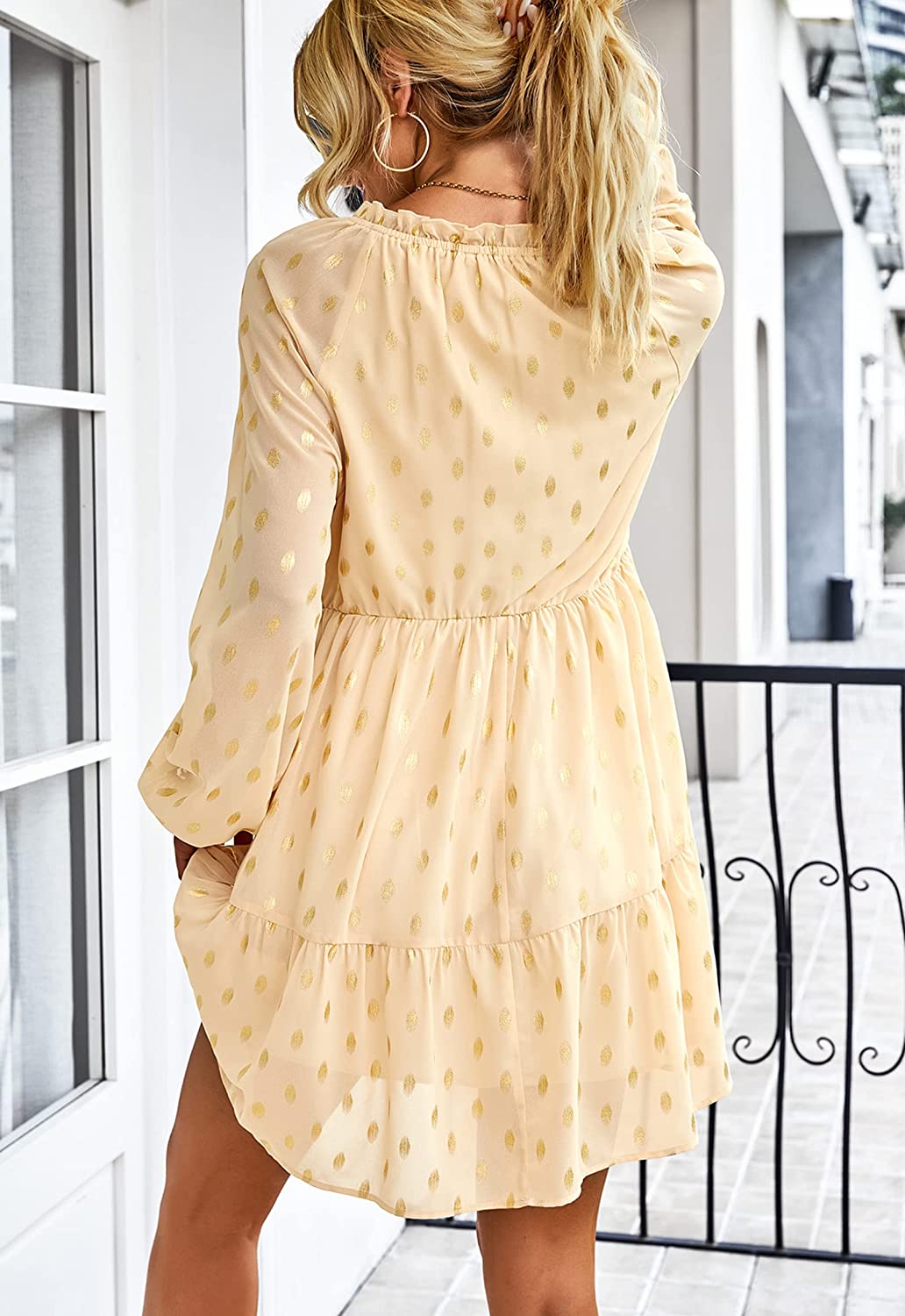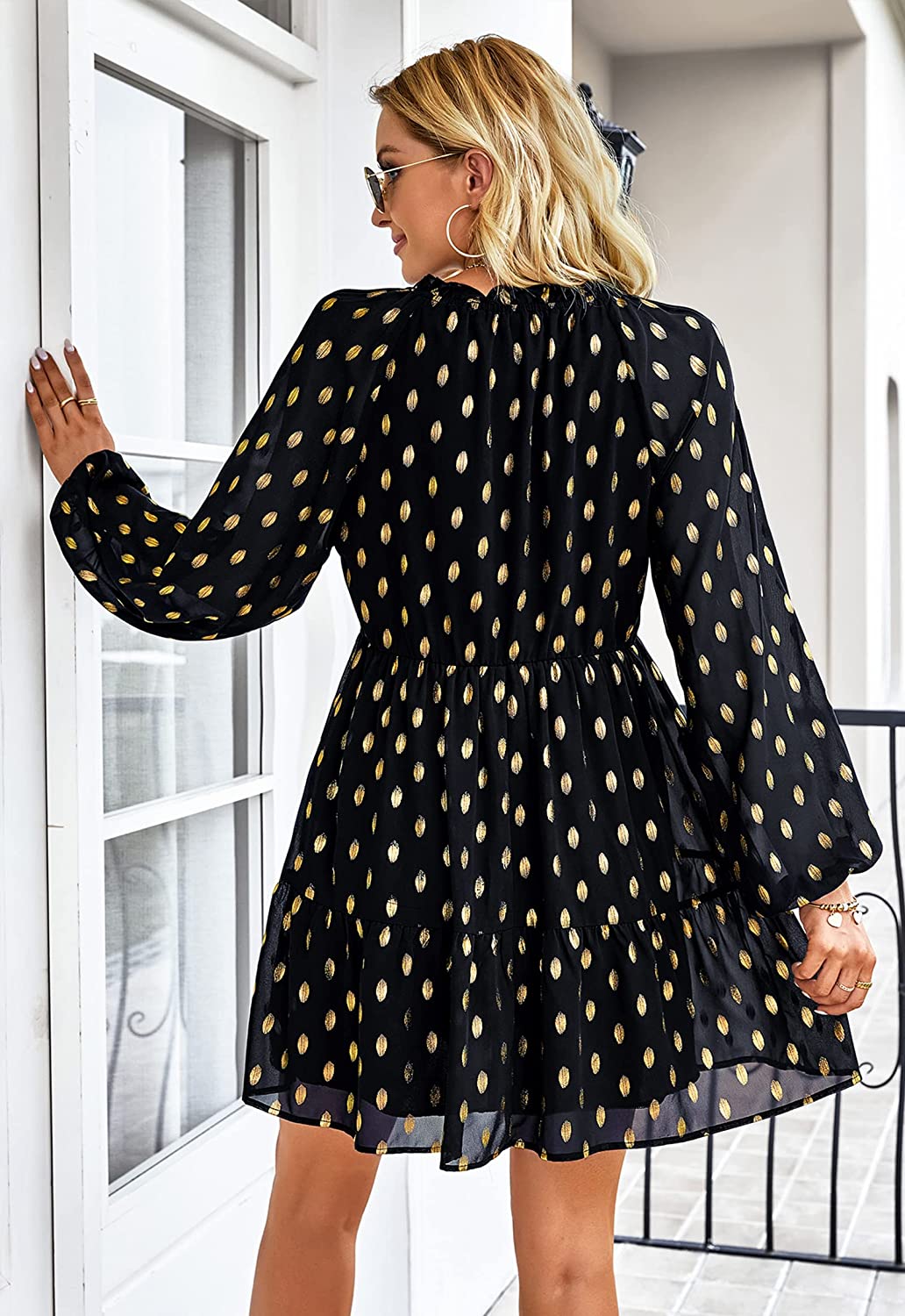 • FEATURES: Spring Dresses/Summer Dresses For Women 2023/Wedding Guest Dresses/Long Sleeve Mini Dress/Cute Babydoll Dress/V Neck Dress/Women's Casual Dress/Ruffle Dress/Short Dress A Line/Two Styles: Polka Dot And Floral Print /Tie Neck/Knee Length/Lightweight/Ruffle Pleated Hem/High Waist/Lantern Sleeve/Lined/Sweet, Casual, Trendy.