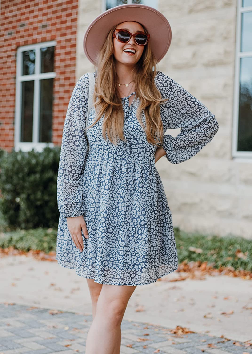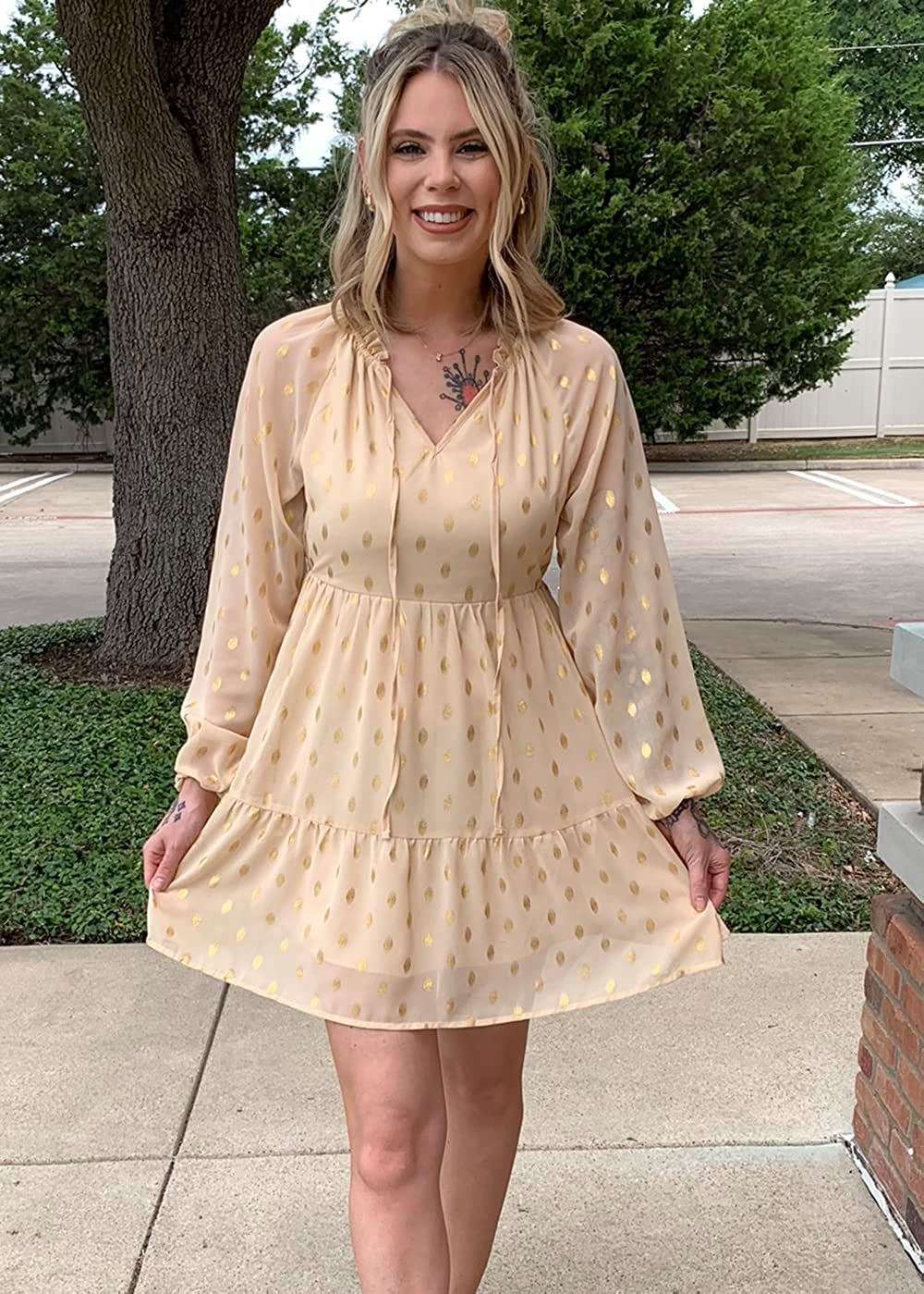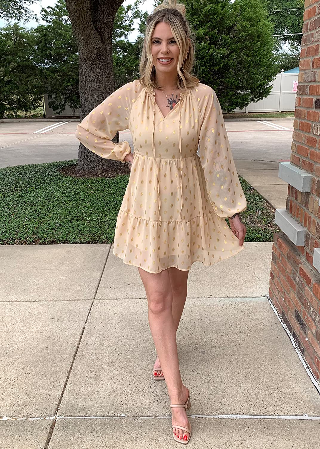 • VERSATILE DESIGN: Cute Long Sleeve Dress Is Short Length And Loose Fit. The Lightweight Flowy Dress Makes Walk Easily. Have Lined, Not Seen Through, Comfortable To Wear In Any Season.