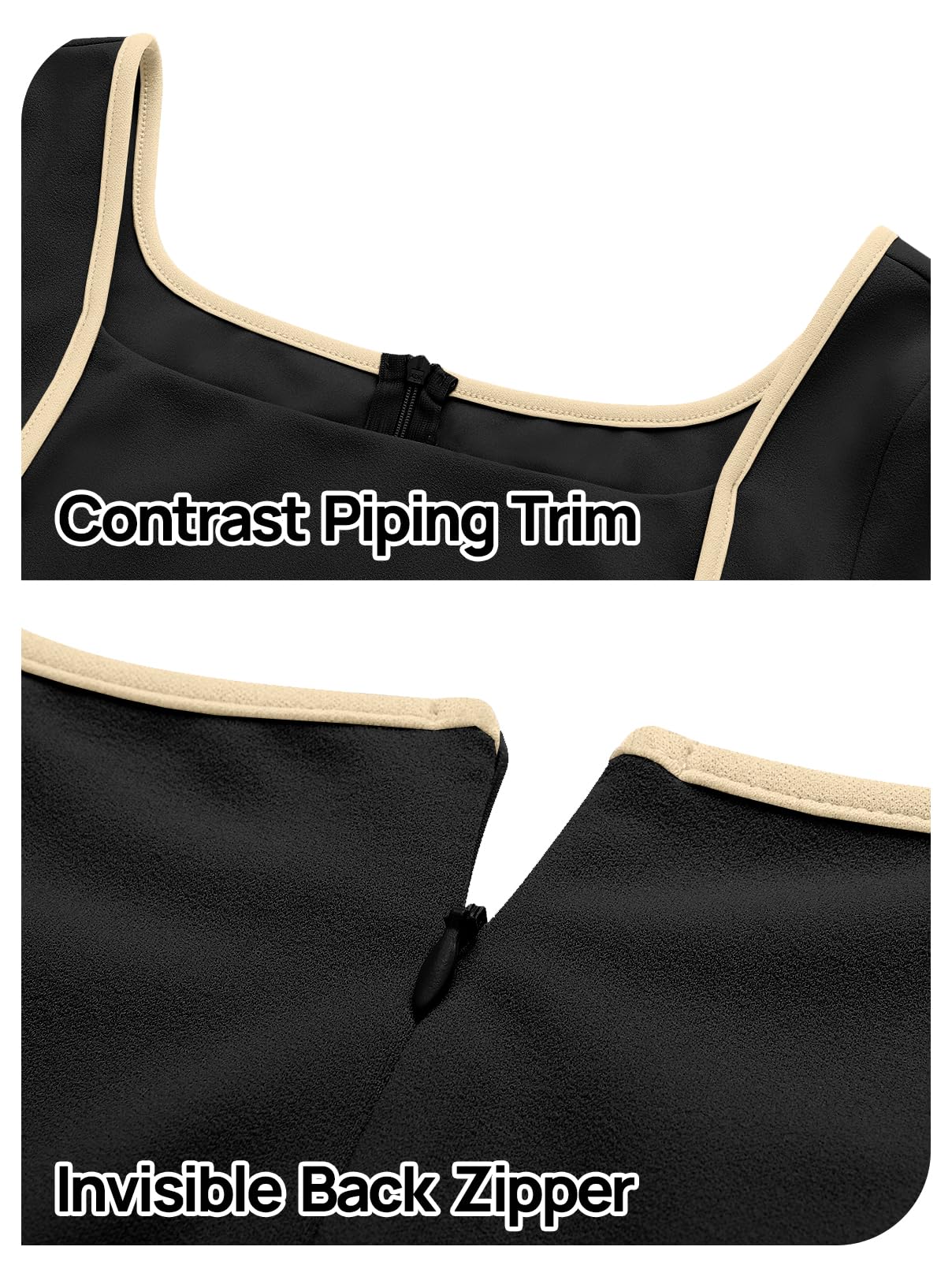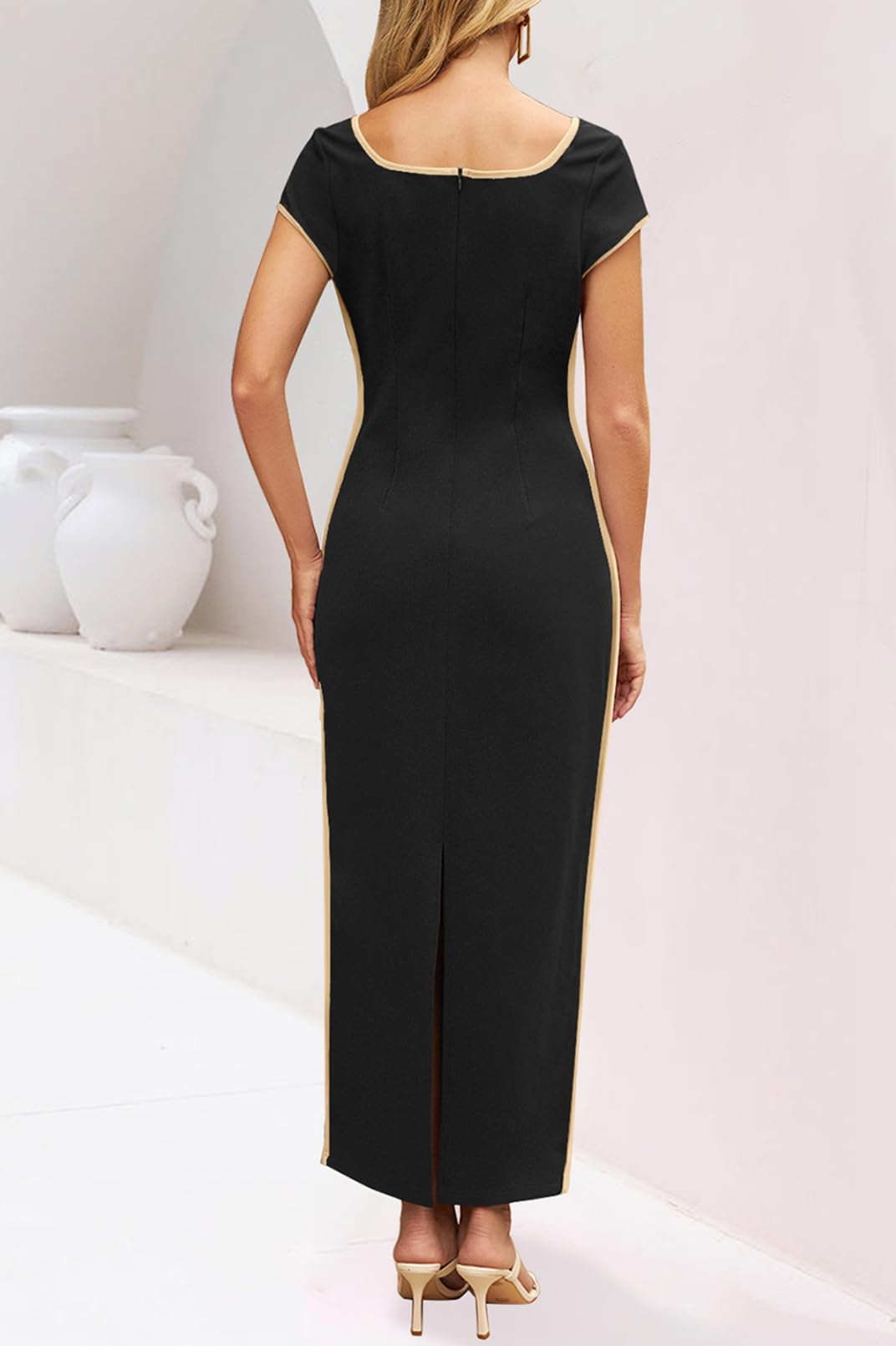 • Unique Design: Short sleeves, square neck, invisible back zipper, contrast piping trim, back slit, ankle length, slim fitted, elegant style, bodycon maxi dress for women.