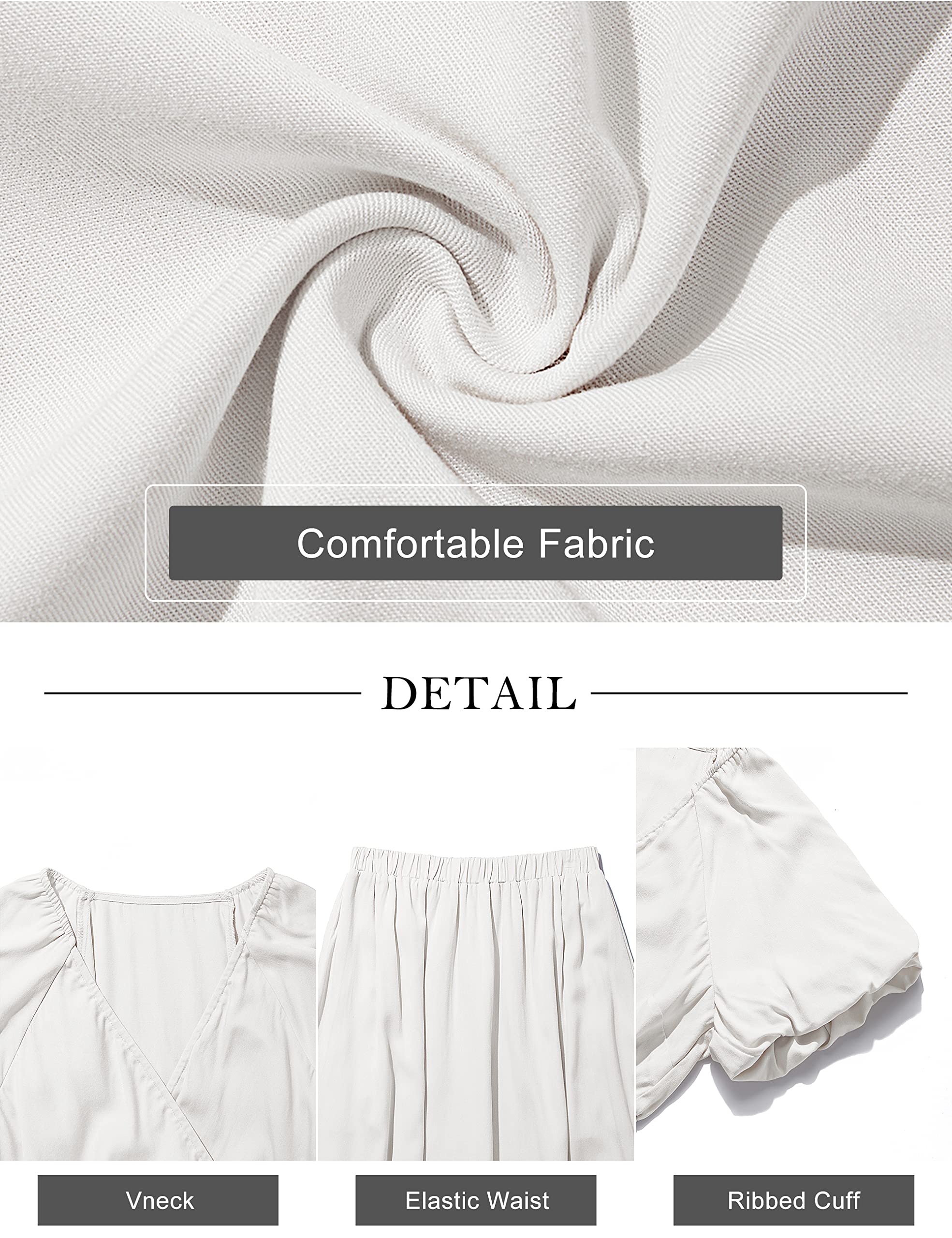 • Feature: Deep v neck, wrap front, short puff sleeve, crop top with elastic hem, sexy and attractive style, solid color a-line long skirt with elastic waistband, two pockets.