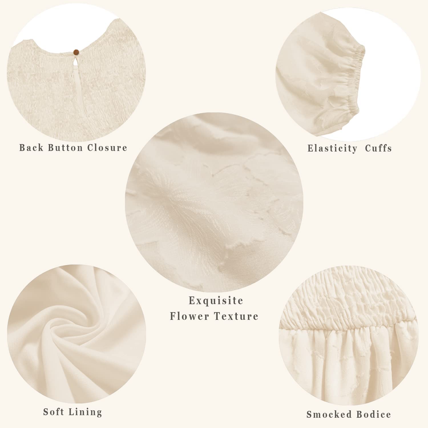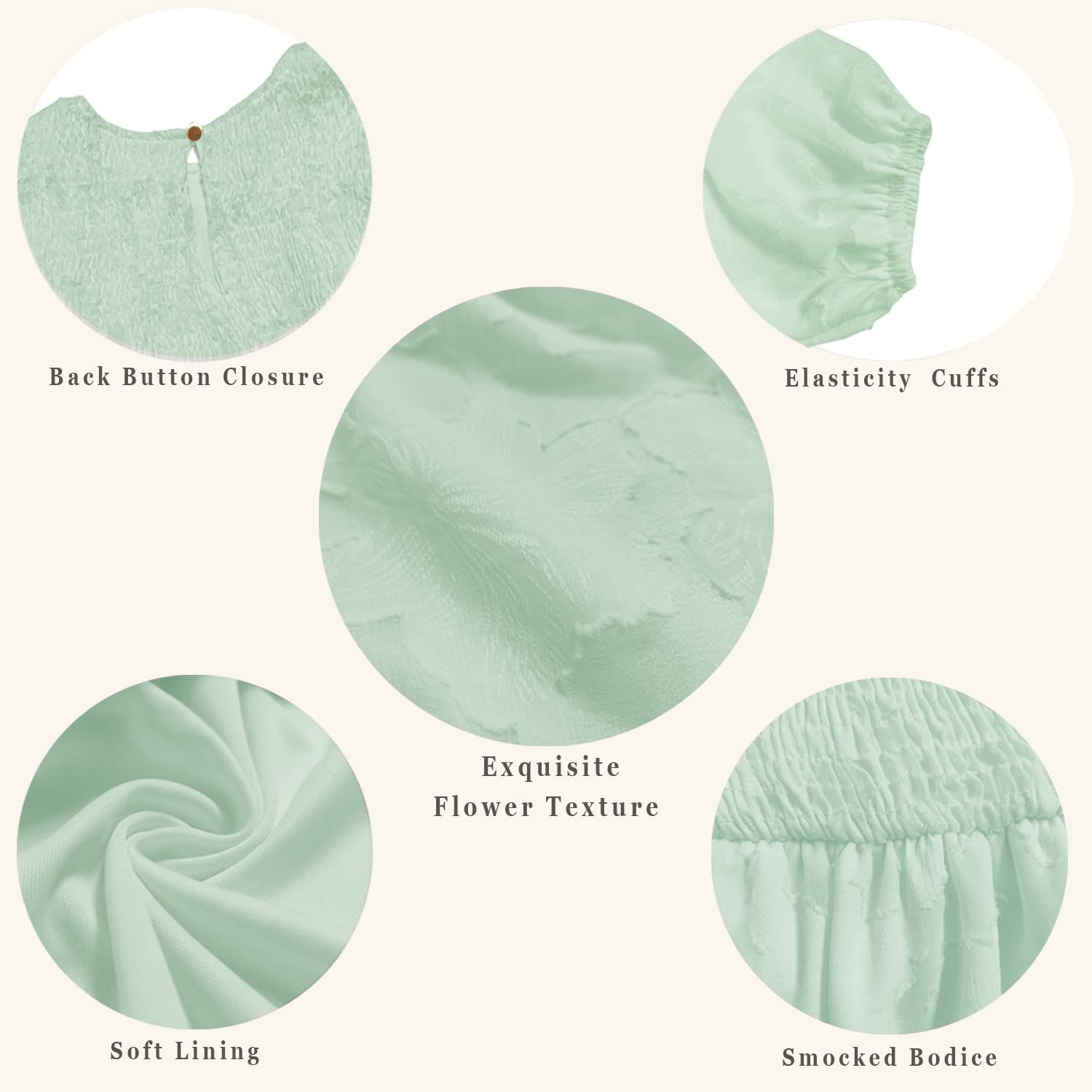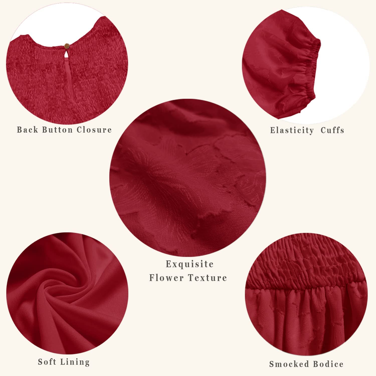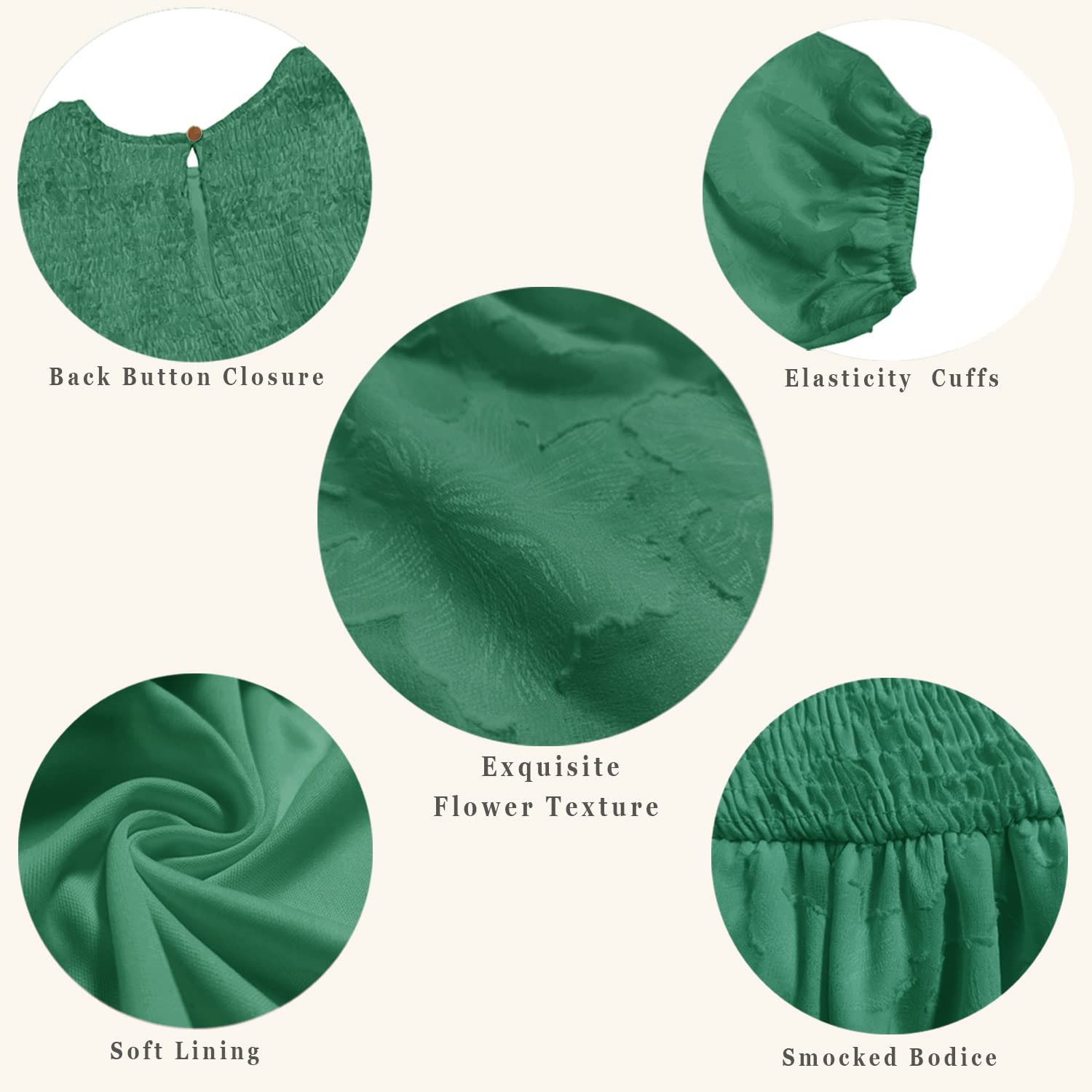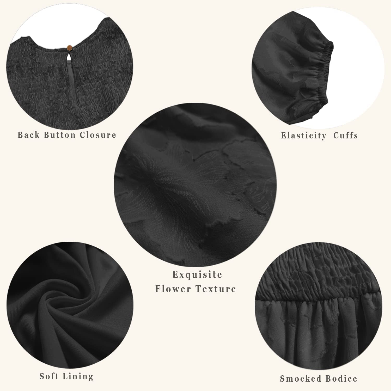 • 【 Size Guide】 Small (US 4~6); Medium (US 8~10); Large (US 12~14); X-Large (US 16). FEATURES: Crew neck, A-Line, Floral textured, Puff sleeves, Lantern sleeve, Long length, Ruffle hem, High waist, Light mesh, Frill, Two side pockets, four colors to choose from.