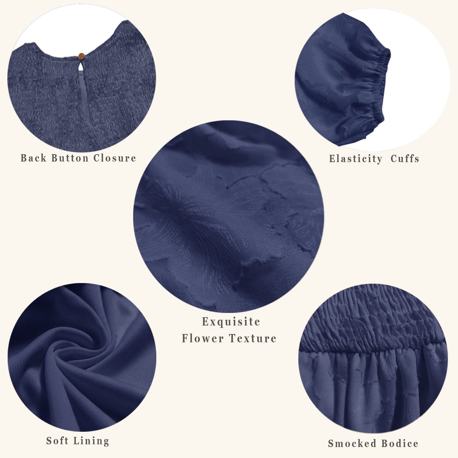 • 【 Shirred Dress 】Features a shirred bodice with a round neckline, slightly sheer long sleeves with elasticated cuffs. The dress goes great with any body shape and looks just a great fit on you whenever you decide to wear it.