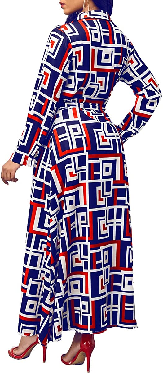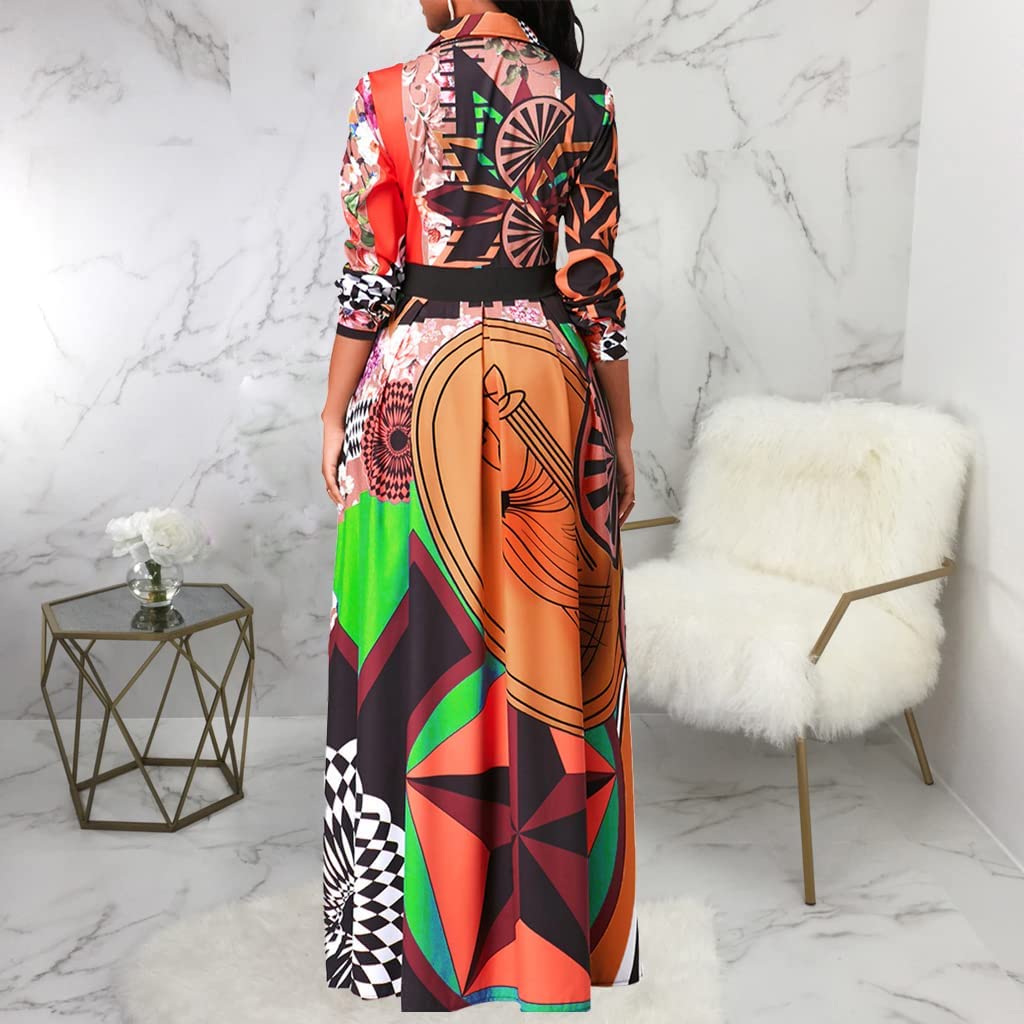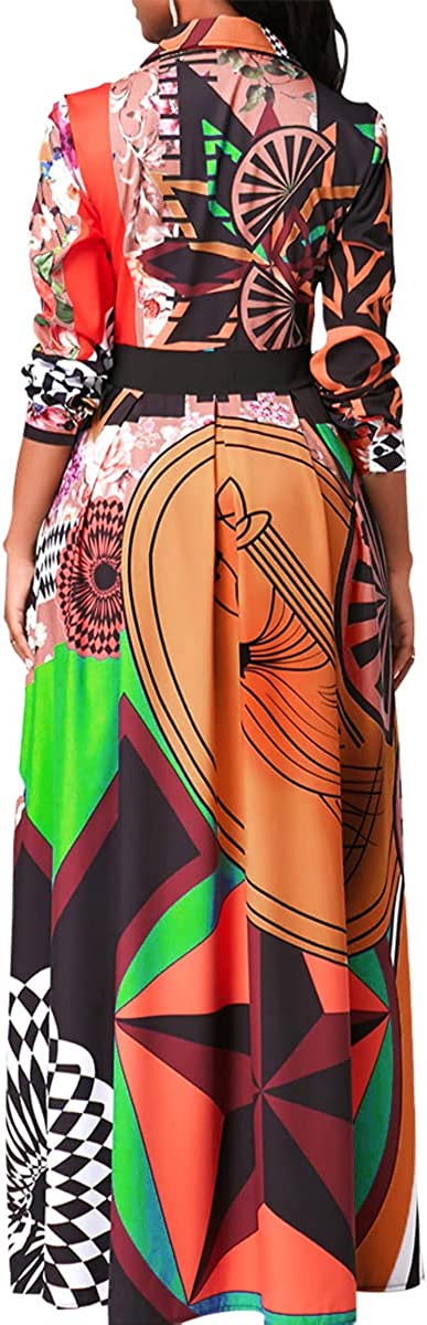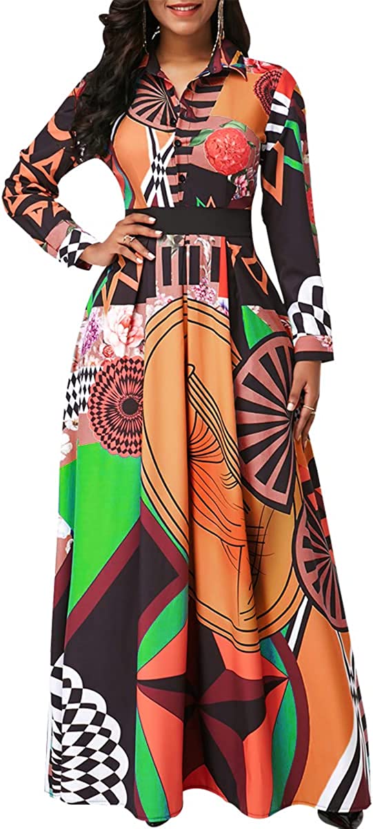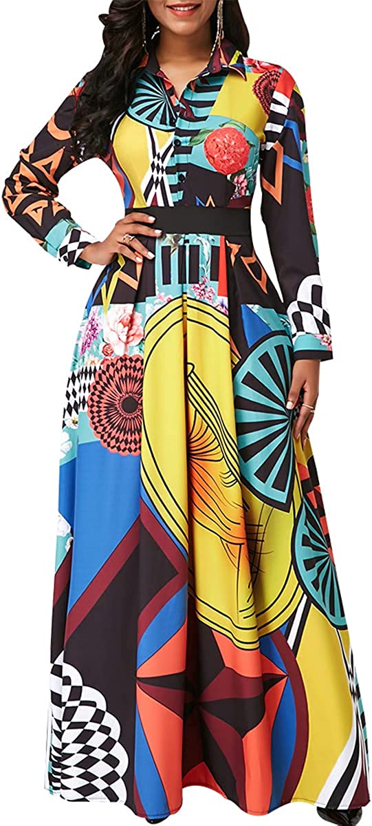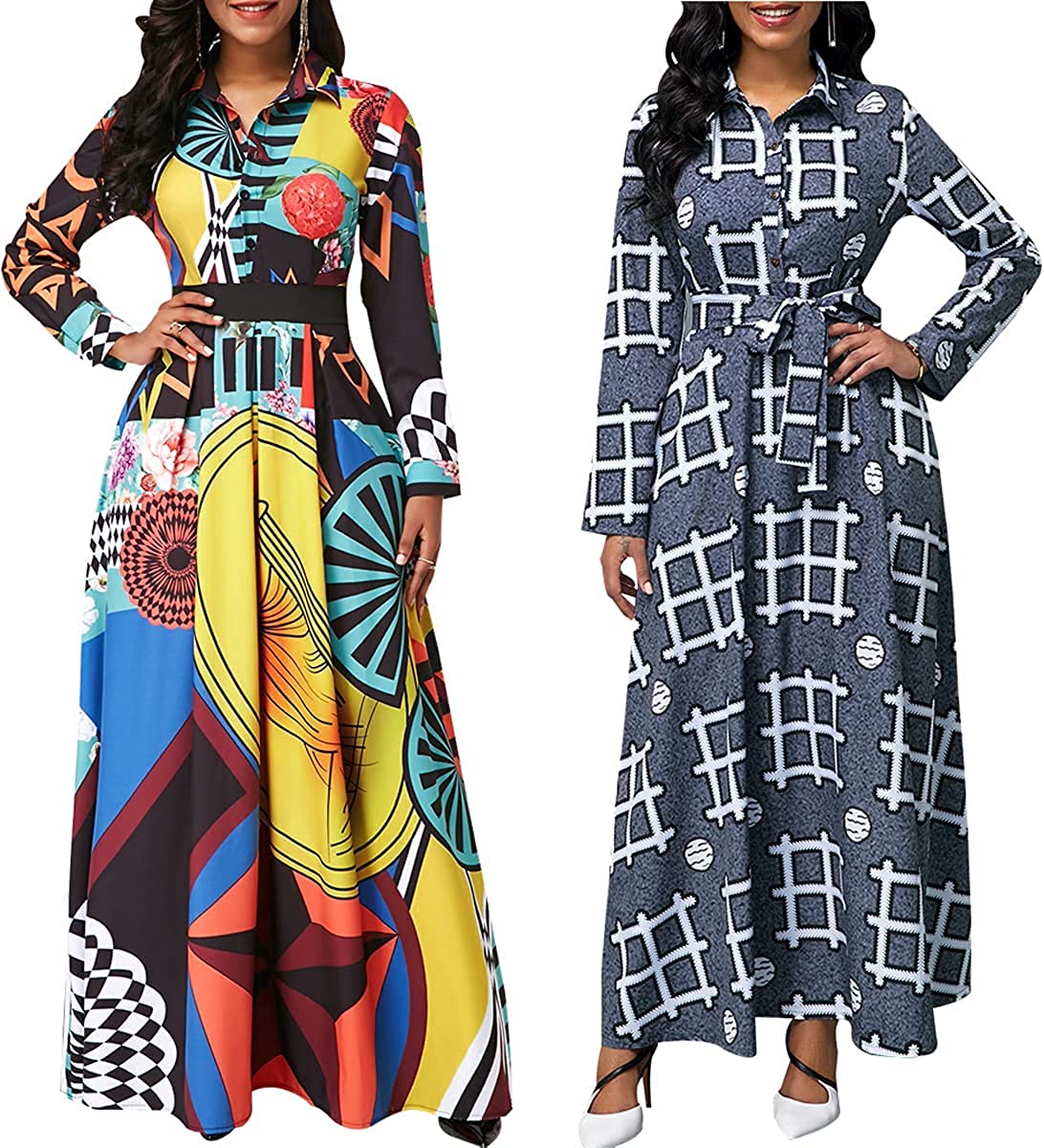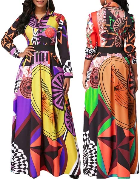 • Features:Shirt Collar,Long Sleeve,Button Down,with Belt,Floral Print,Big Swing,Long Maxi Shirt Dress,African Ethnic Print, Long sleeve maxi dress makes you more charming