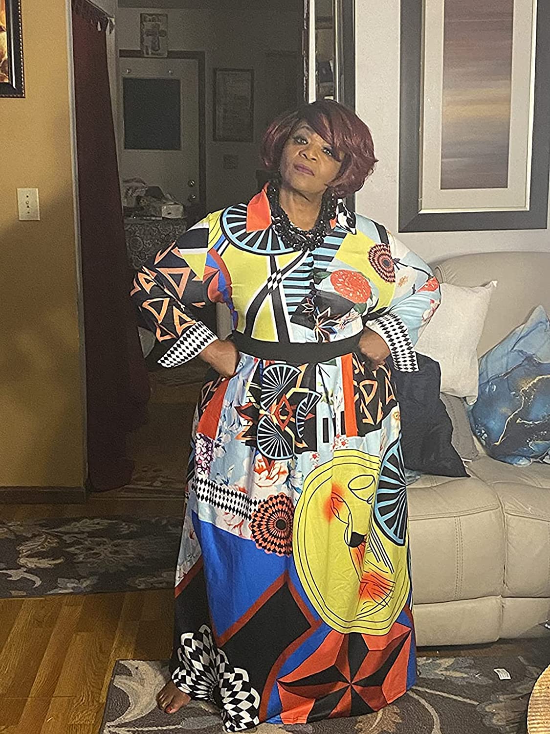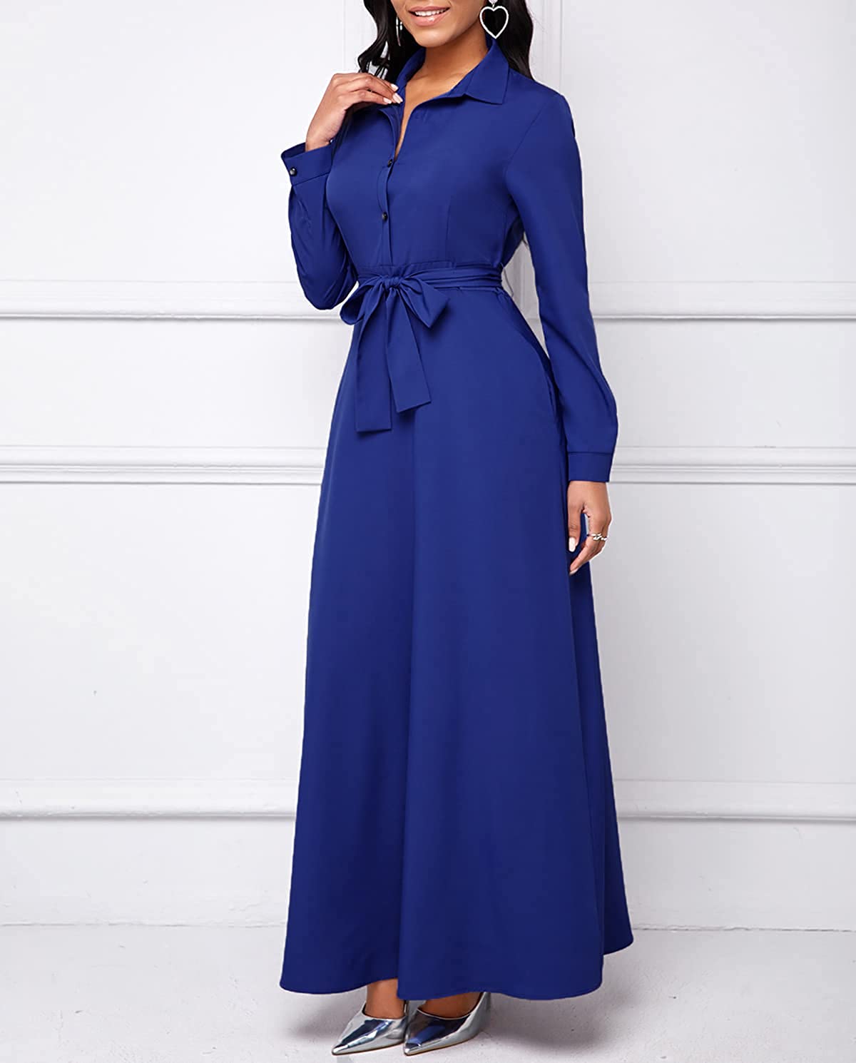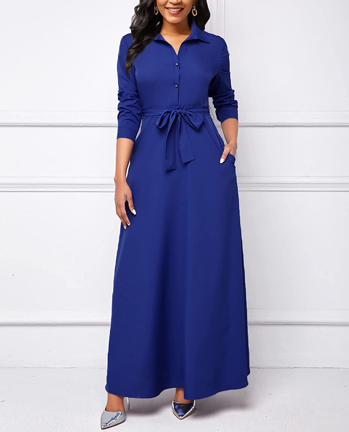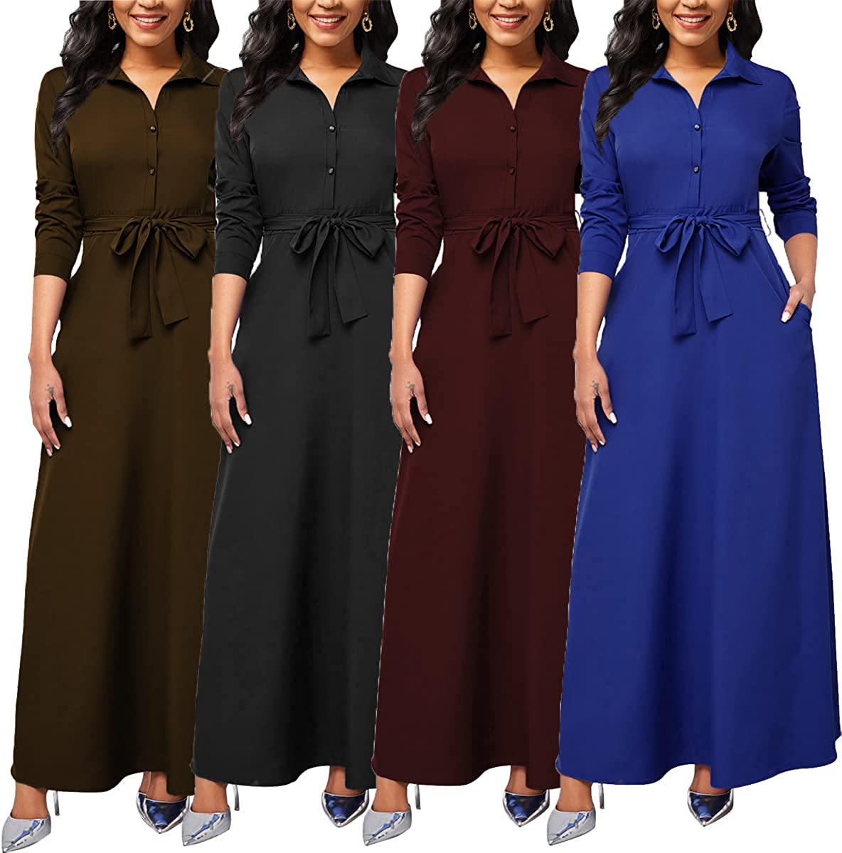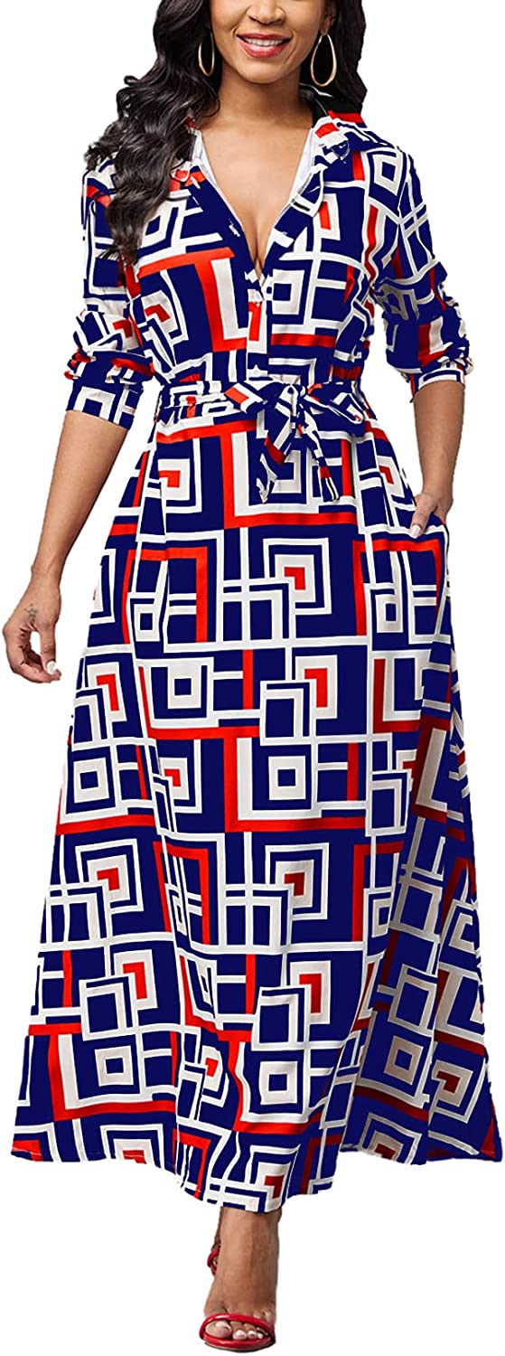 • Features:Shirt Collar,Long Sleeve,Button Down,with Belt,Floral Print,Big Swing,Long Maxi Shirt Dress,African Ethnic Print, Long sleeve maxi dress makes you more charming