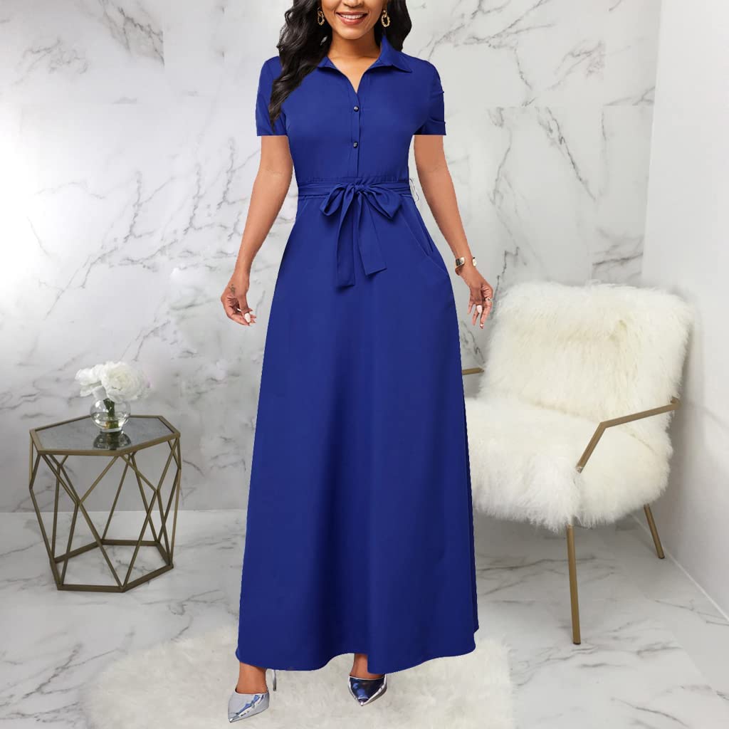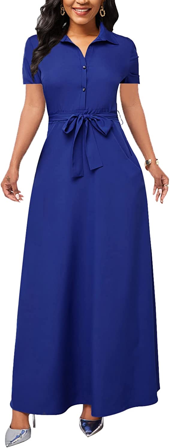 MsavigVice Maxi Dresses for Women Button Down with Pockets Long Dress Casual V Neck Floral Print Loose Prom Dresses Outfits